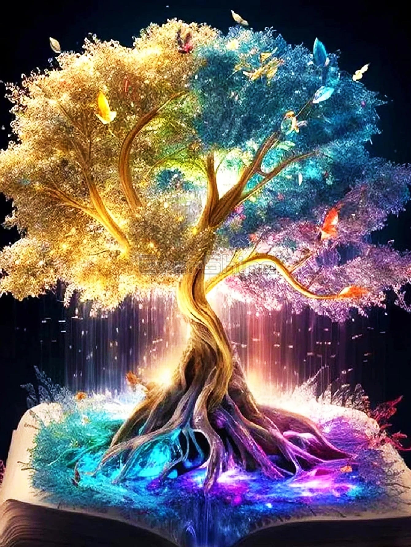 AB Diamond Painting met AB en Fairy dust steentjes – Boom landschap