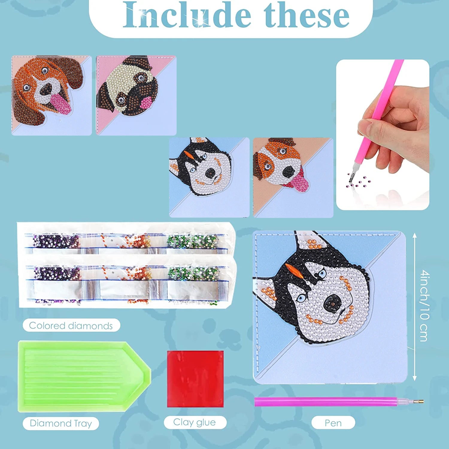Diamond Painting Boekenlegger Hoeken Set van 4 met PU Leer en Strass