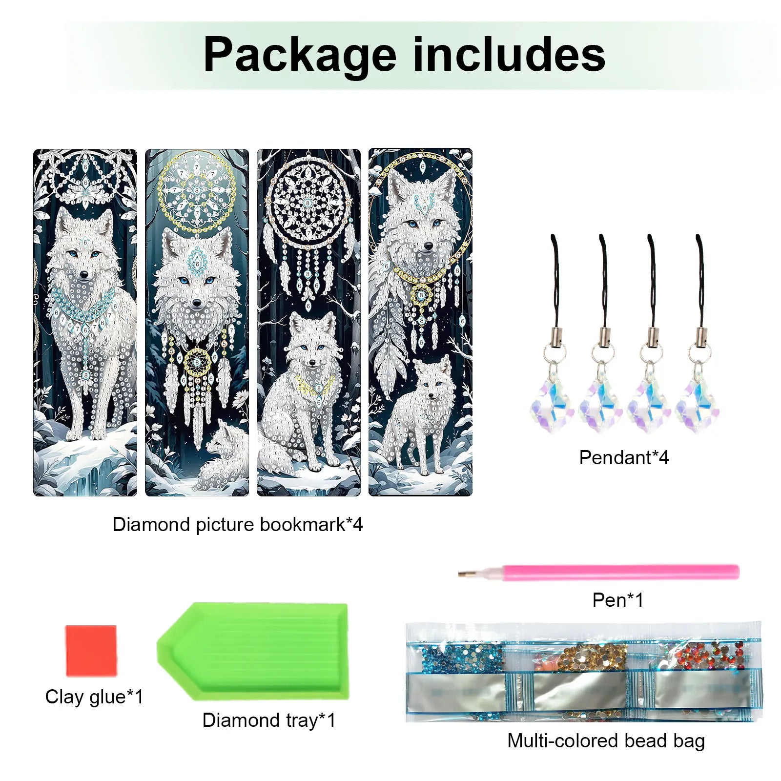 Diamond Painting Boekenlegger Witte Vos en Beer Set met 8 Stuks
