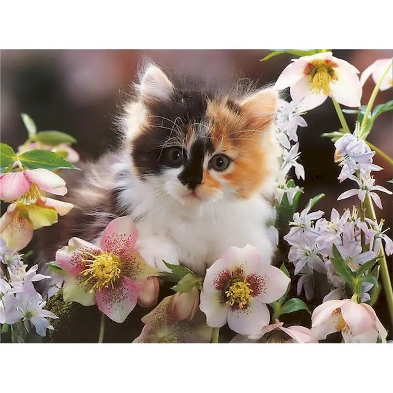 Diamond Painting Dieren - Kat met bloemen landschap wanddecoratie - DZDP32710