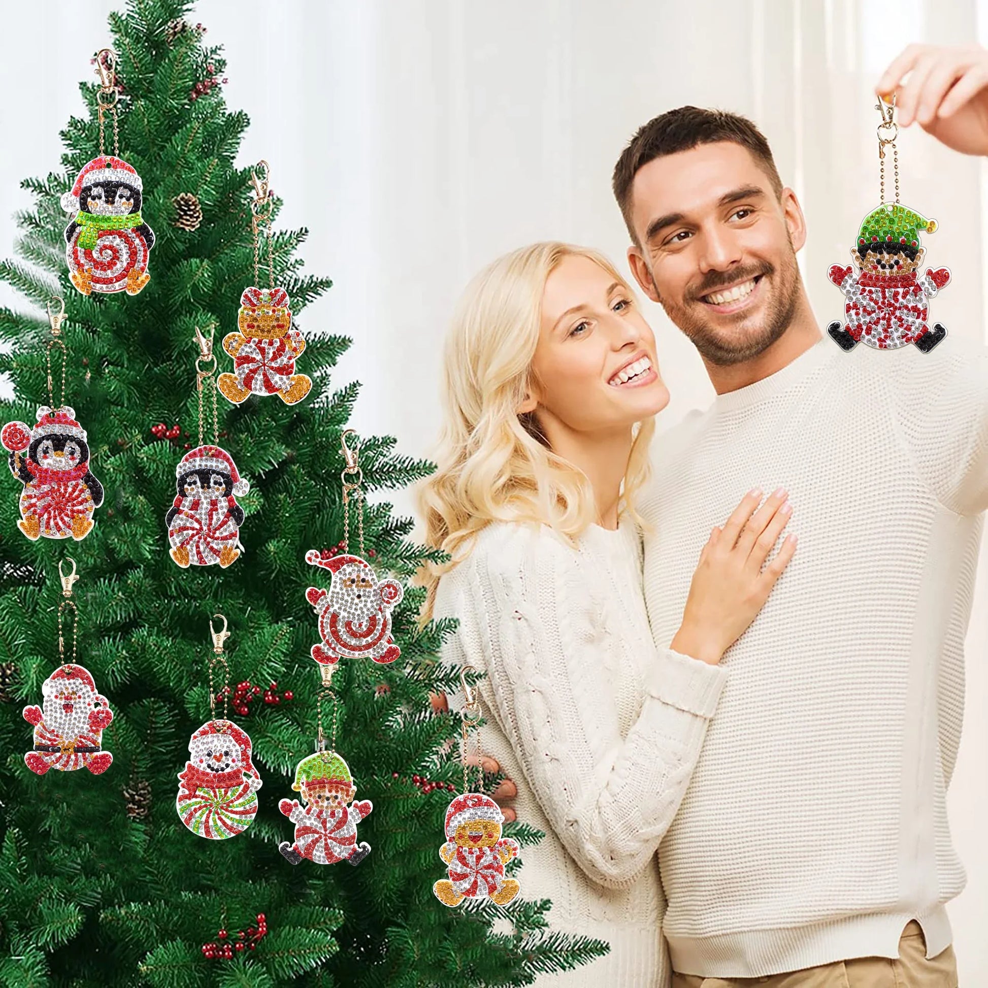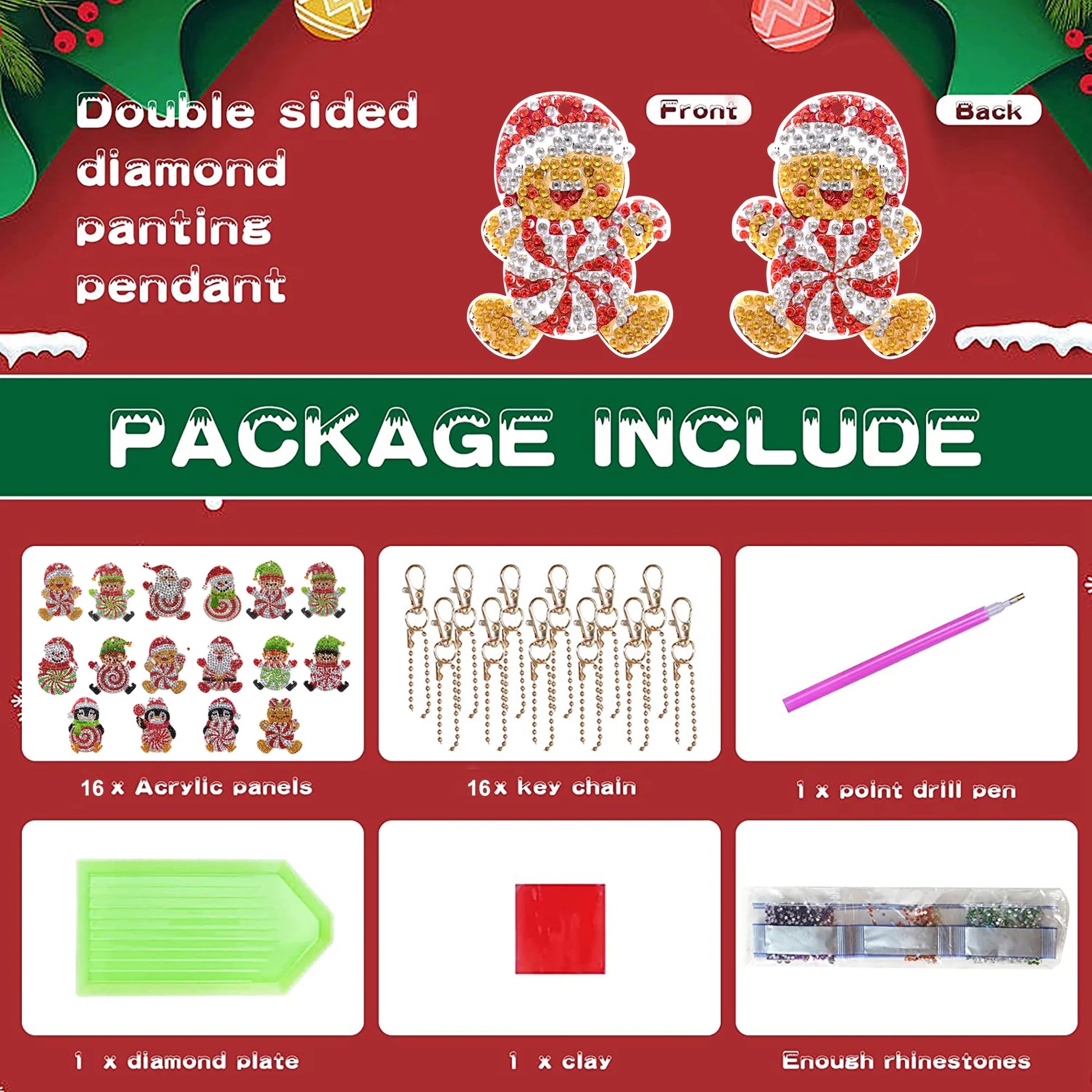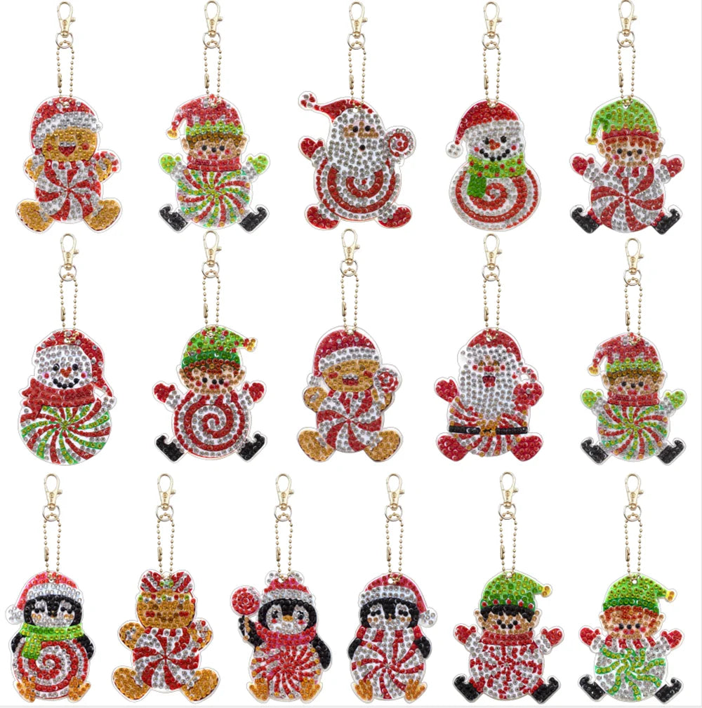 Diamond Painting Kerst Sleutelhangers 16-delig met pinguïns, kerstman en meer