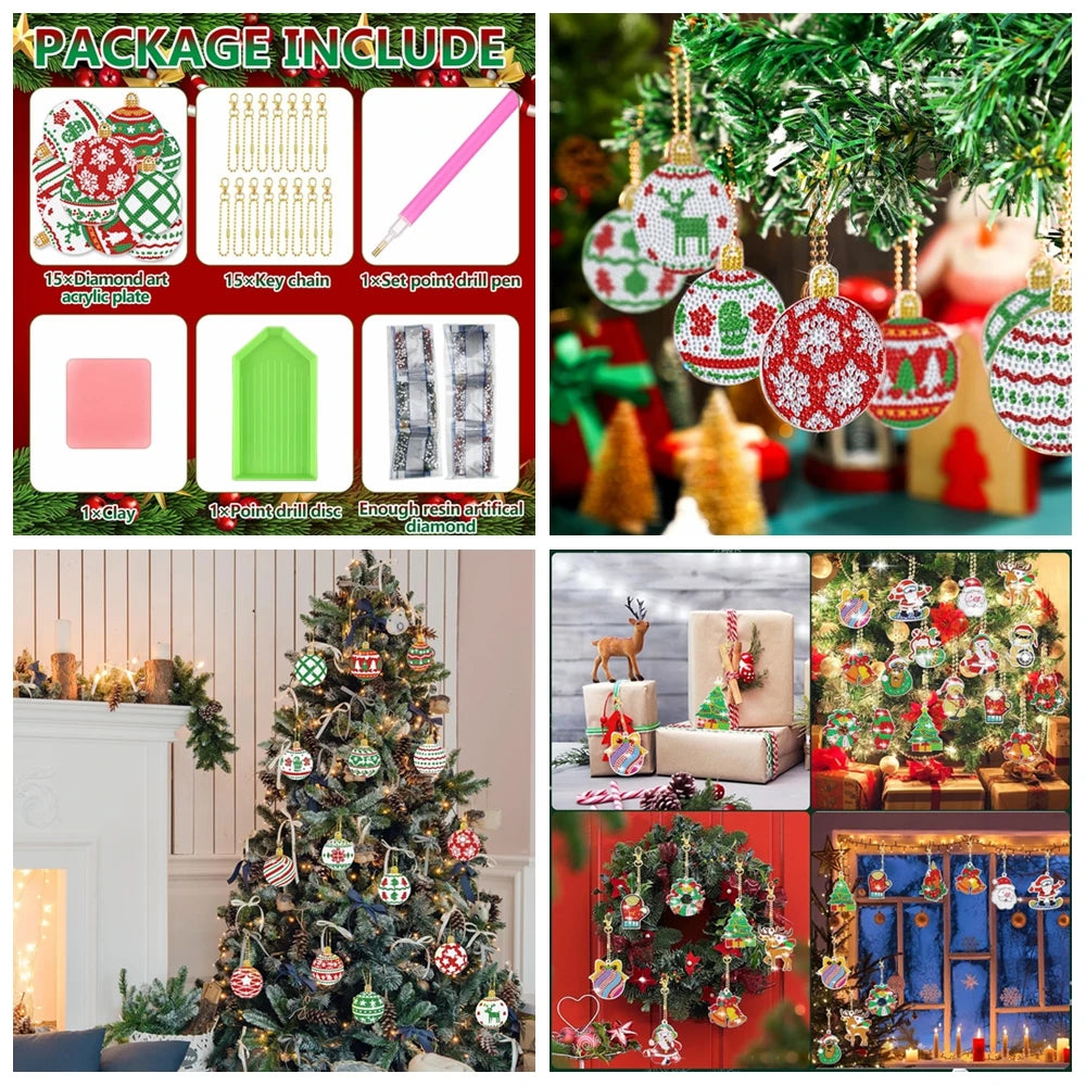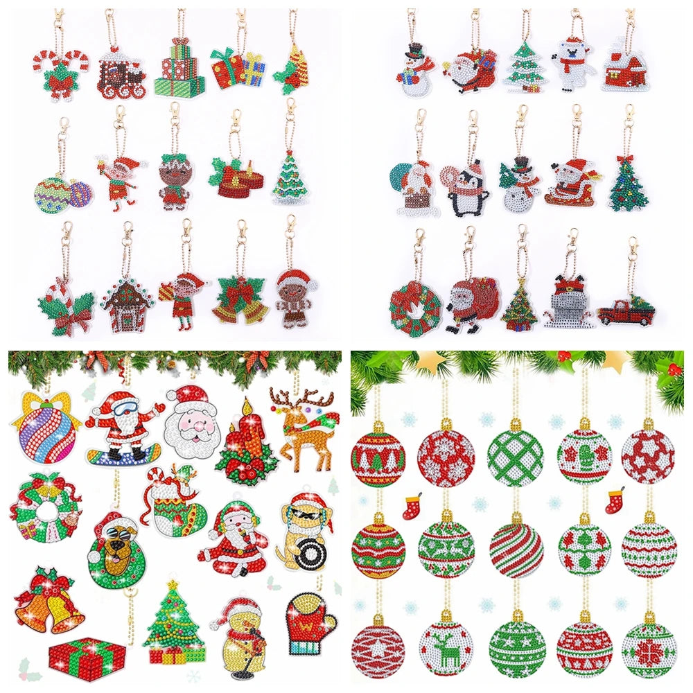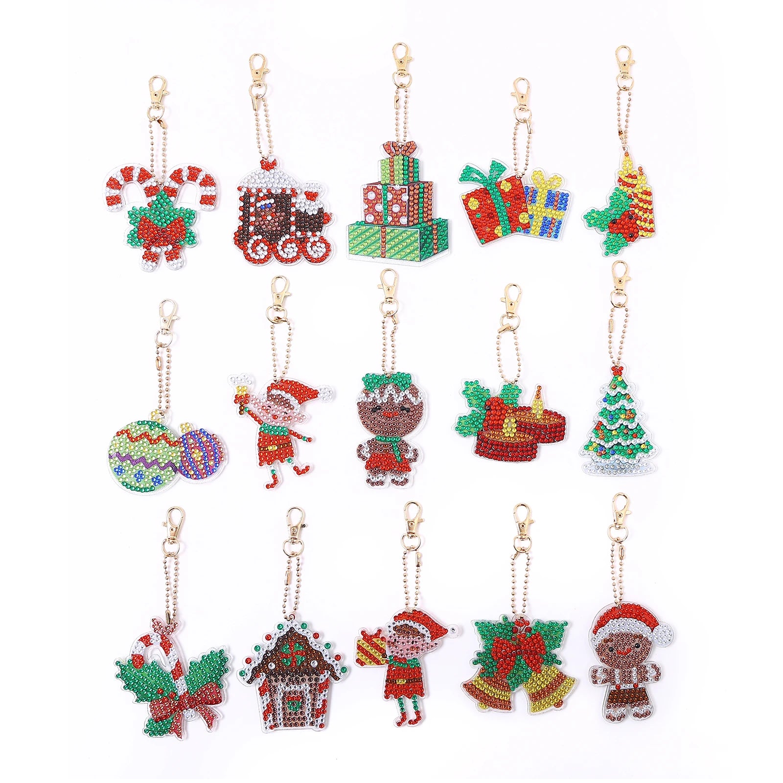 Diamond Painting Kerst Sleutelhangers – Set van 15 Dubbelzijdige Ornamenten
