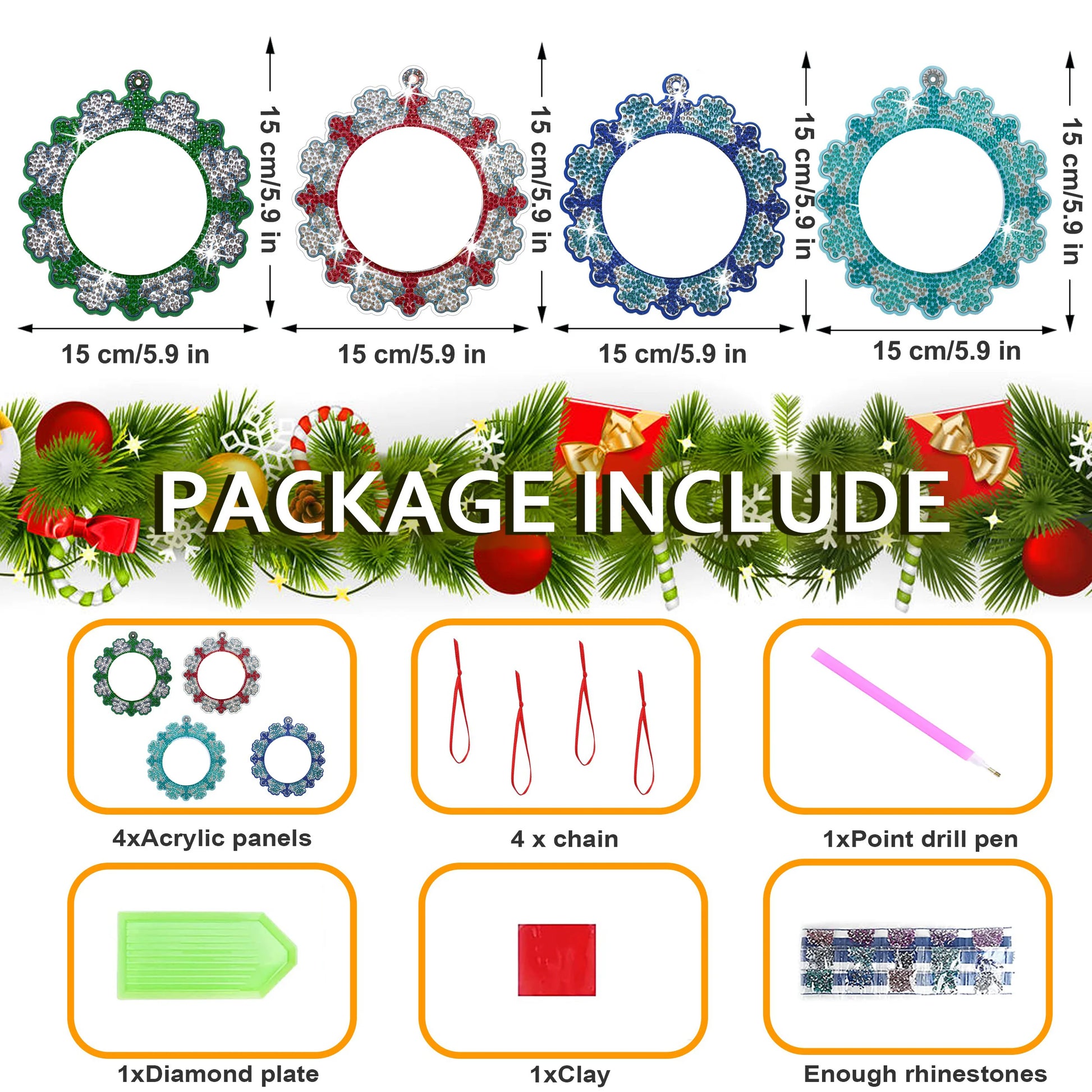 Diamond Painting Kersthangers fotolijst kerstdecoratie set 4 stuks - SDZ006