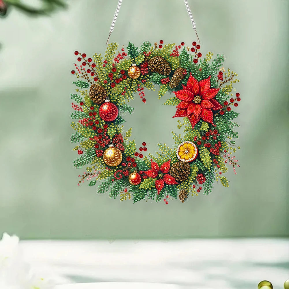Diamond Painting Kerstkrans hanger raamdecoratie acryl met strass steentjes