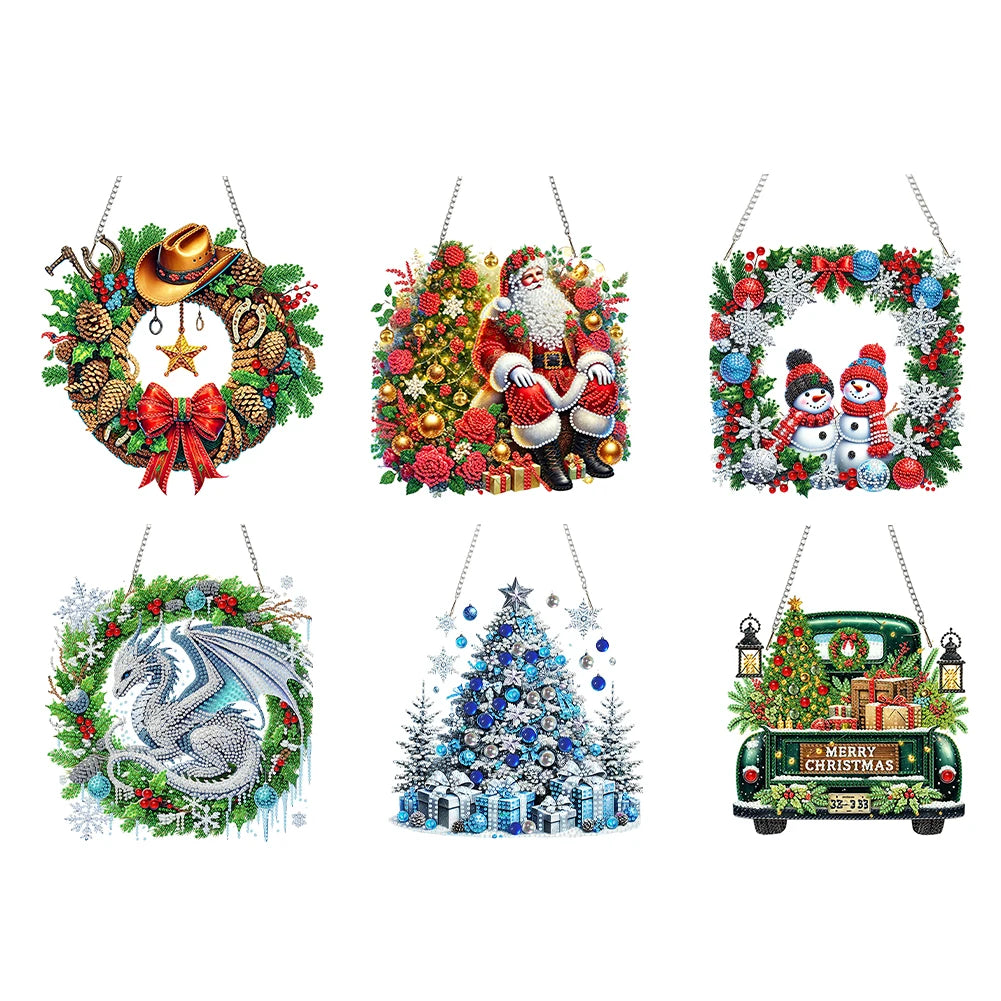 Diamond Painting Kerstkrans raam- en wandhanger met strass steentjes