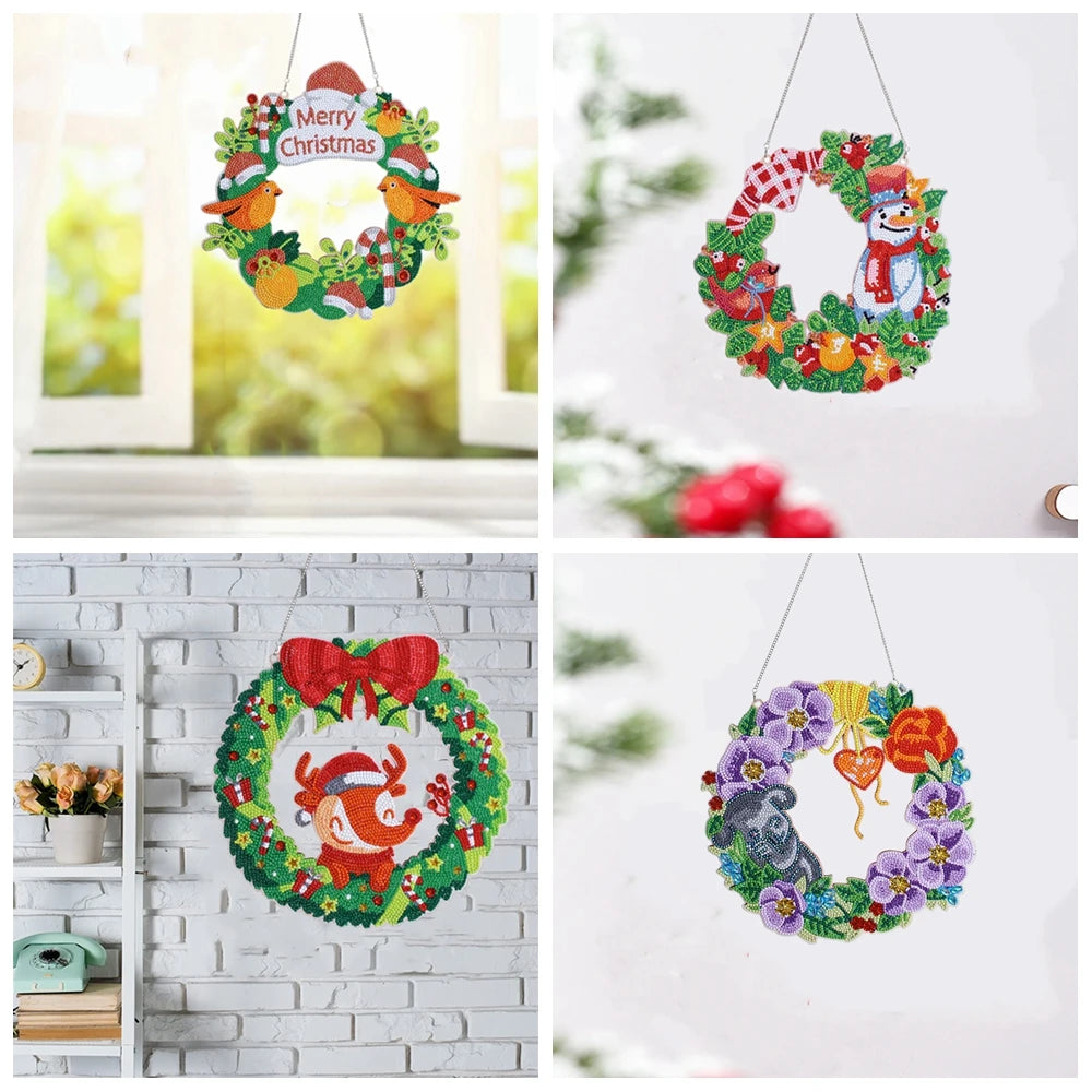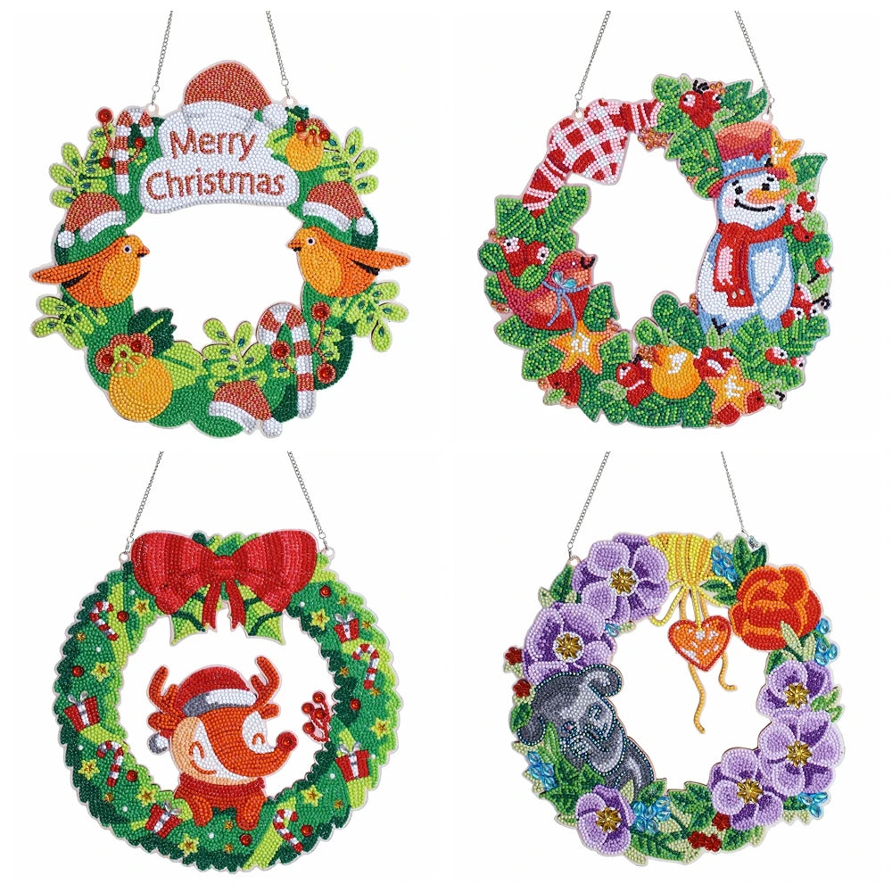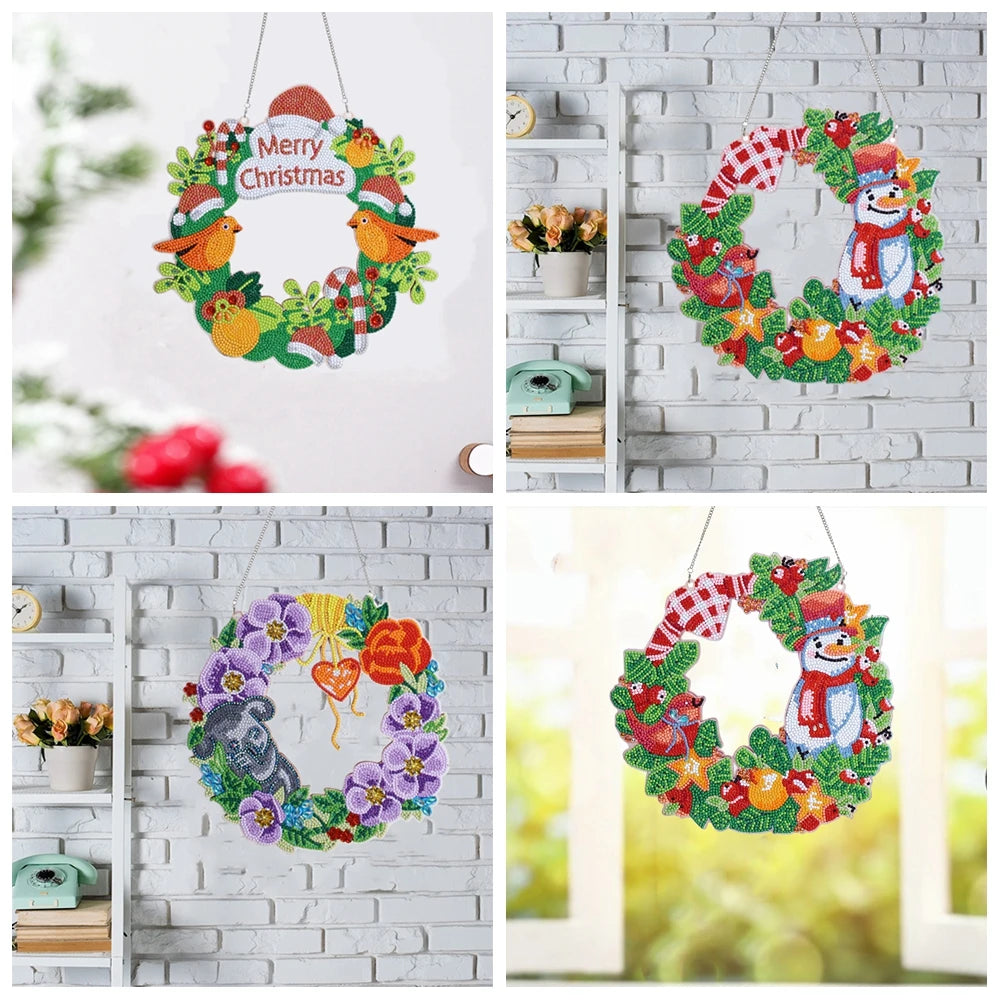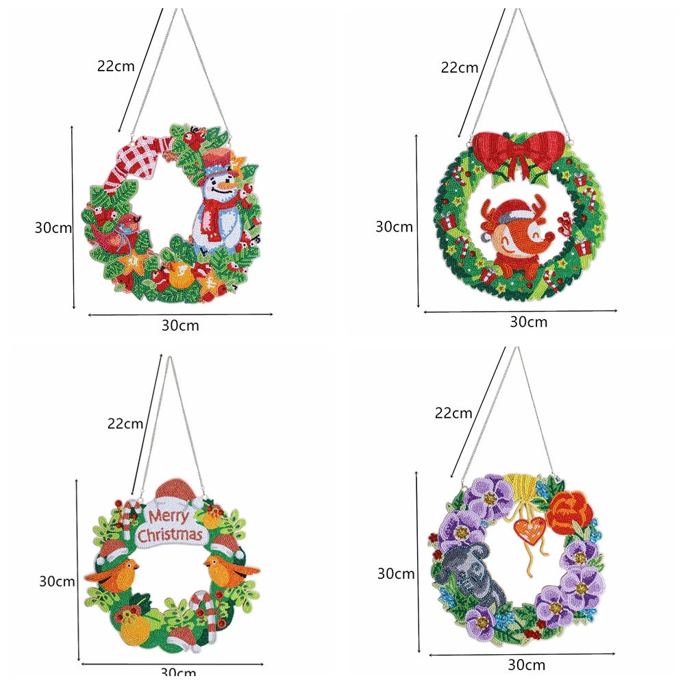 Diamond Painting Kerstkrans Sneeuwpop 30x30cm Inclusief Ophangsysteem