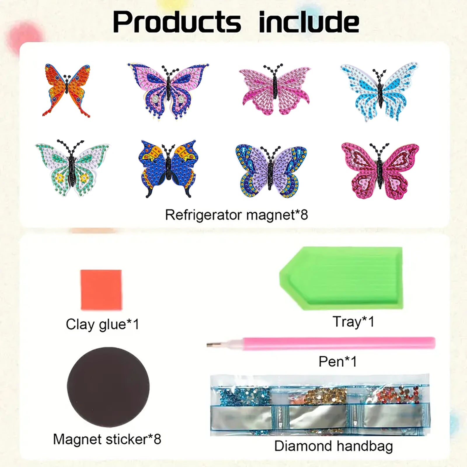 Deze Diamond Painting Magneten met kleurrijke vlinders zijn een stijlvolle manier om elke koelkast, wijnkast, bar of locker te verfraaien. De fonkelende steentjes zorgen voor een levendig en luxe effect dat direct opvalt. Dankzij het compacte formaat zijn de magneten subtiel aanwezig, maar trekken ze toch de aandacht door hun sprankelende uitstraling.