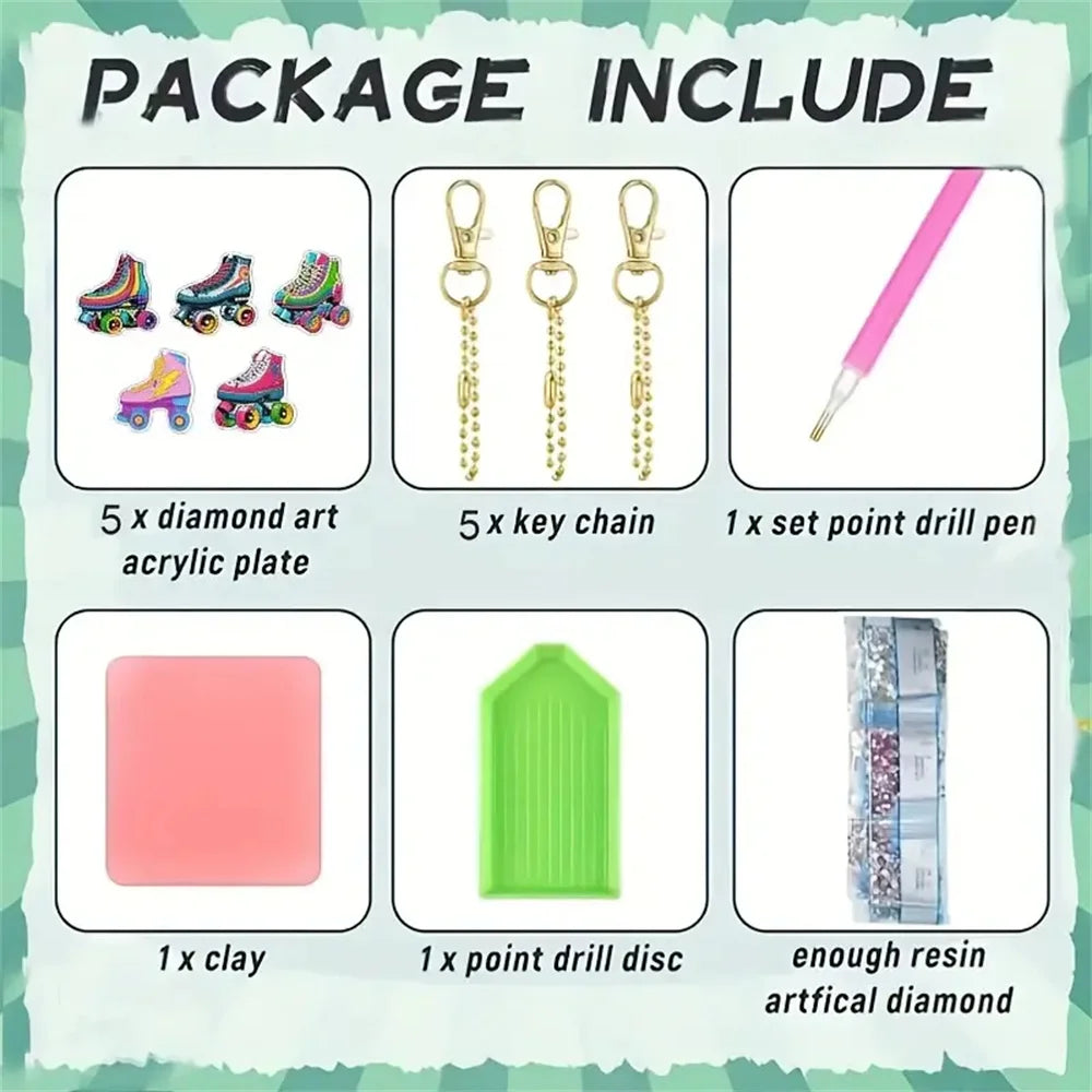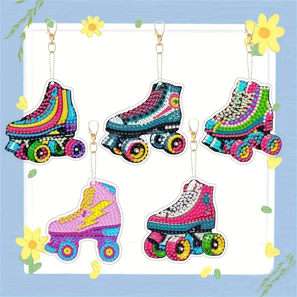 Diamond Painting Sleutelhangers Rolschaats Patroon – 5 stuks Set