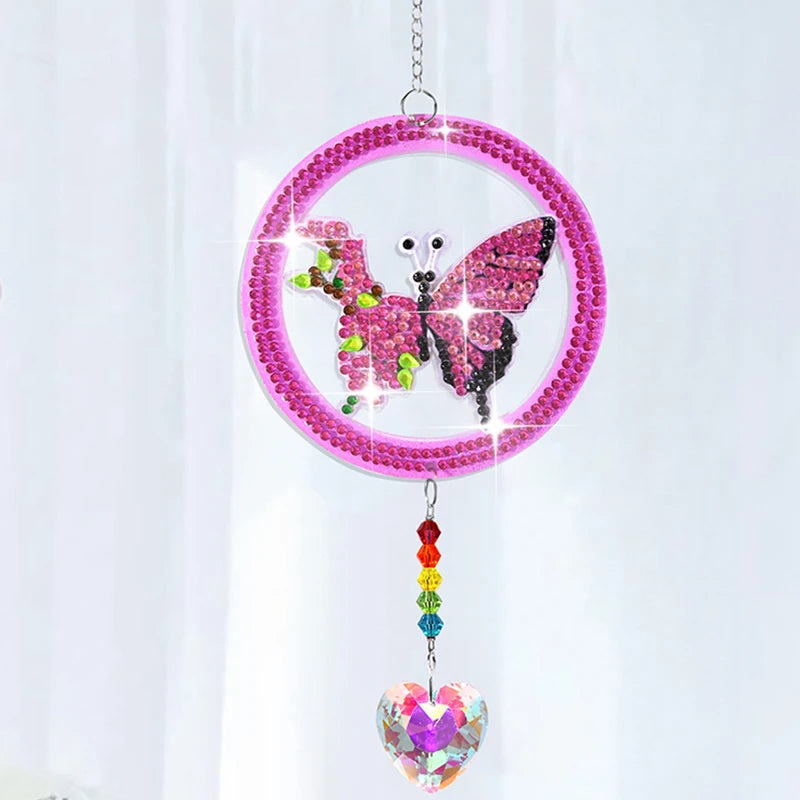 Diamond Painting Windgong Vlinder – Dubbelzijdige Zonnevanger met Steentjes - Roze