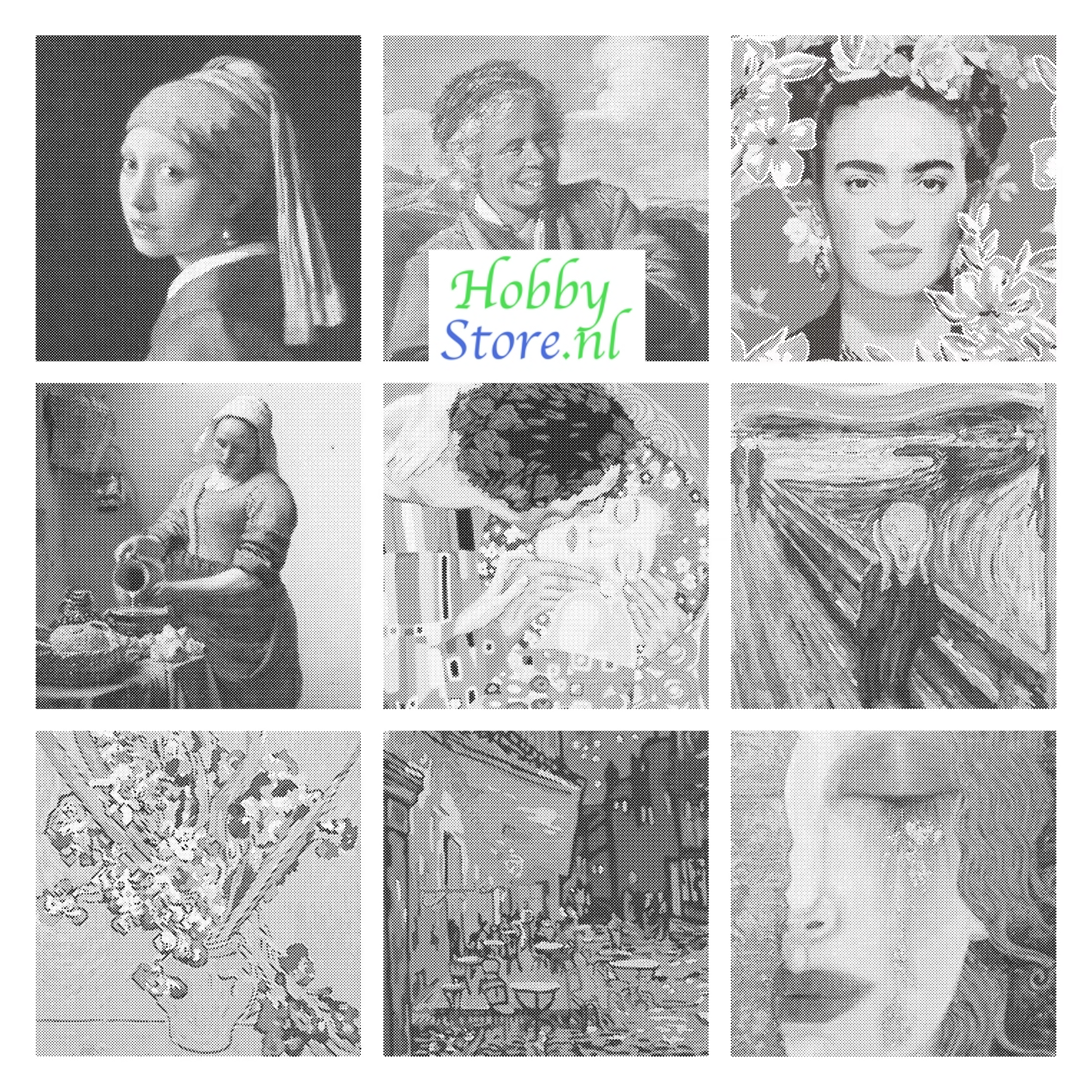 Creëer jouw eigen meesterwerk met de DOT Painting 40x50cm! Dit prachtige ontwerp is geïnspireerd door beroemde schilderijen en brengt de rust en precisie van stippelkunst tot leven. Met één kleur stippen werk je gedetailleerd en geconcentreerd aan een stijlvol kunstwerk, perfect om jouw creatieve vaardigheden te ontwikkelen of te ontspannen na een drukke dag.