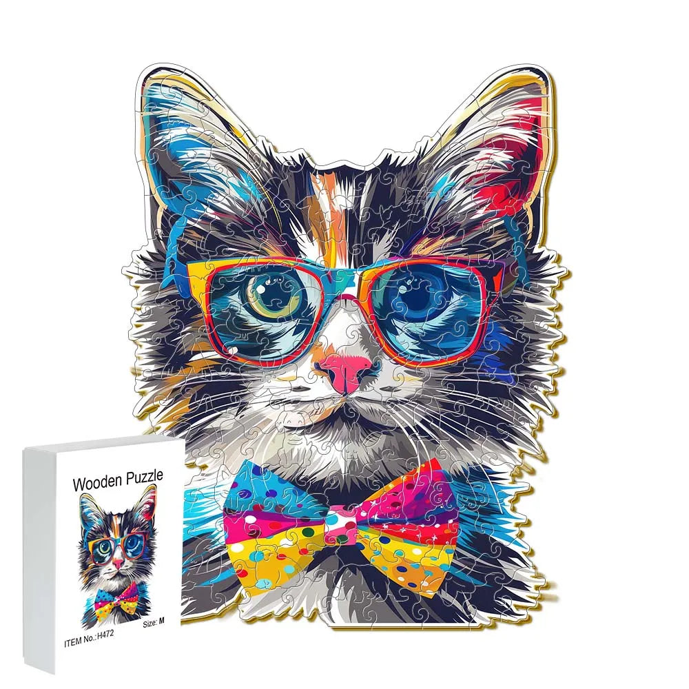 Houten figuren puzzel kat cadeau unieke vorm voor volwassenen en familie