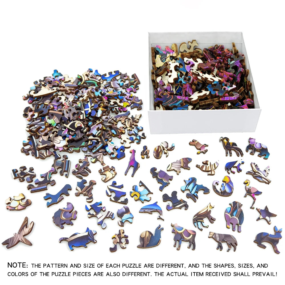 Houten figuren puzzel - Kleurrijk - Unieke dierenvormige puzzelstukjes voor volwassenen en kinderen