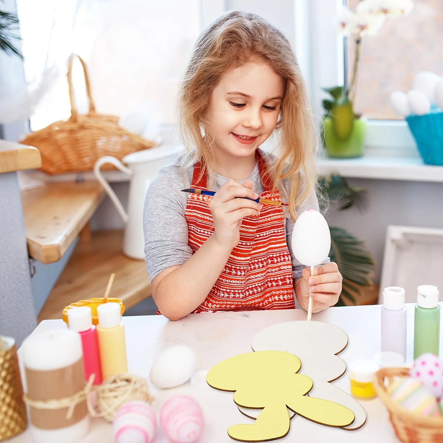 Het stevige hout zorgt ervoor dat de figuren lang mooi blijven en meerdere keren gebruikt kunnen worden. Dankzij het lichte gewicht zijn ze gemakkelijk op te hangen of neer te zetten. De set bevat voldoende figuren om verschillende decoratie-ideeën uit te proberen, waardoor je elk jaar opnieuw een creatieve Paasversiering kunt maken die helemaal bij jouw stijl past.