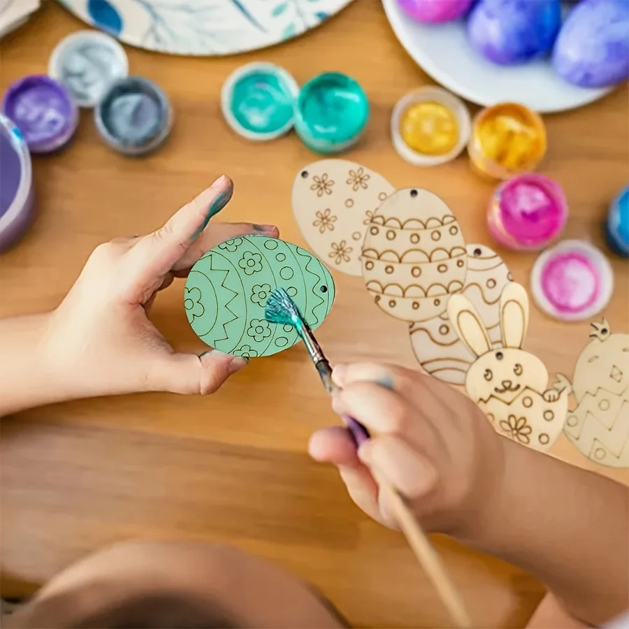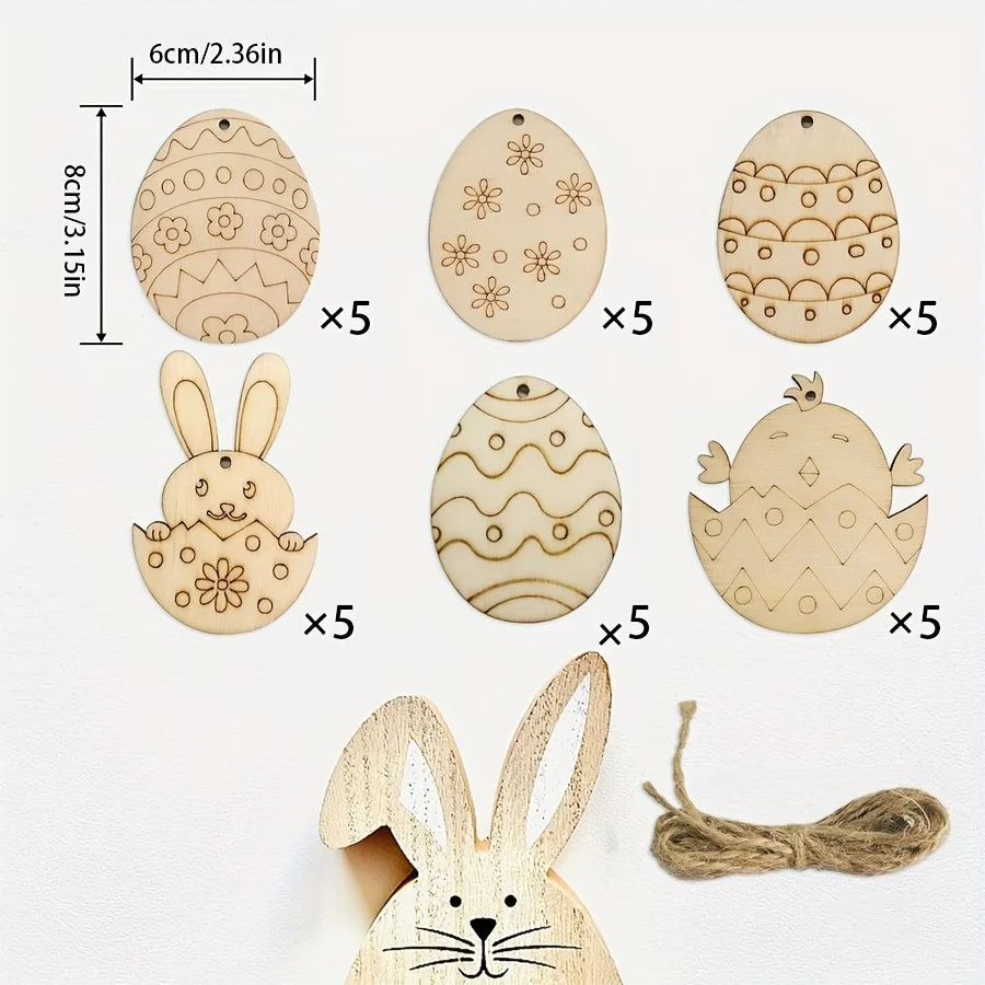 Houten Paas figuren om zelf te kleuren/schilderen – 30 Houten Hangers met Konijnen en Eieren