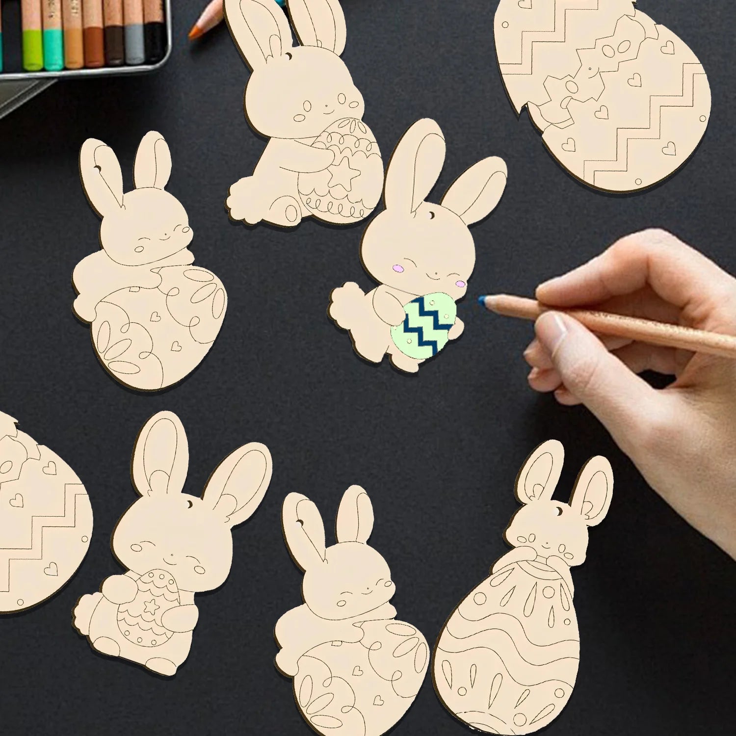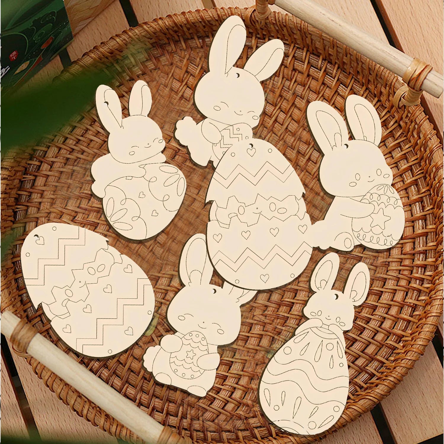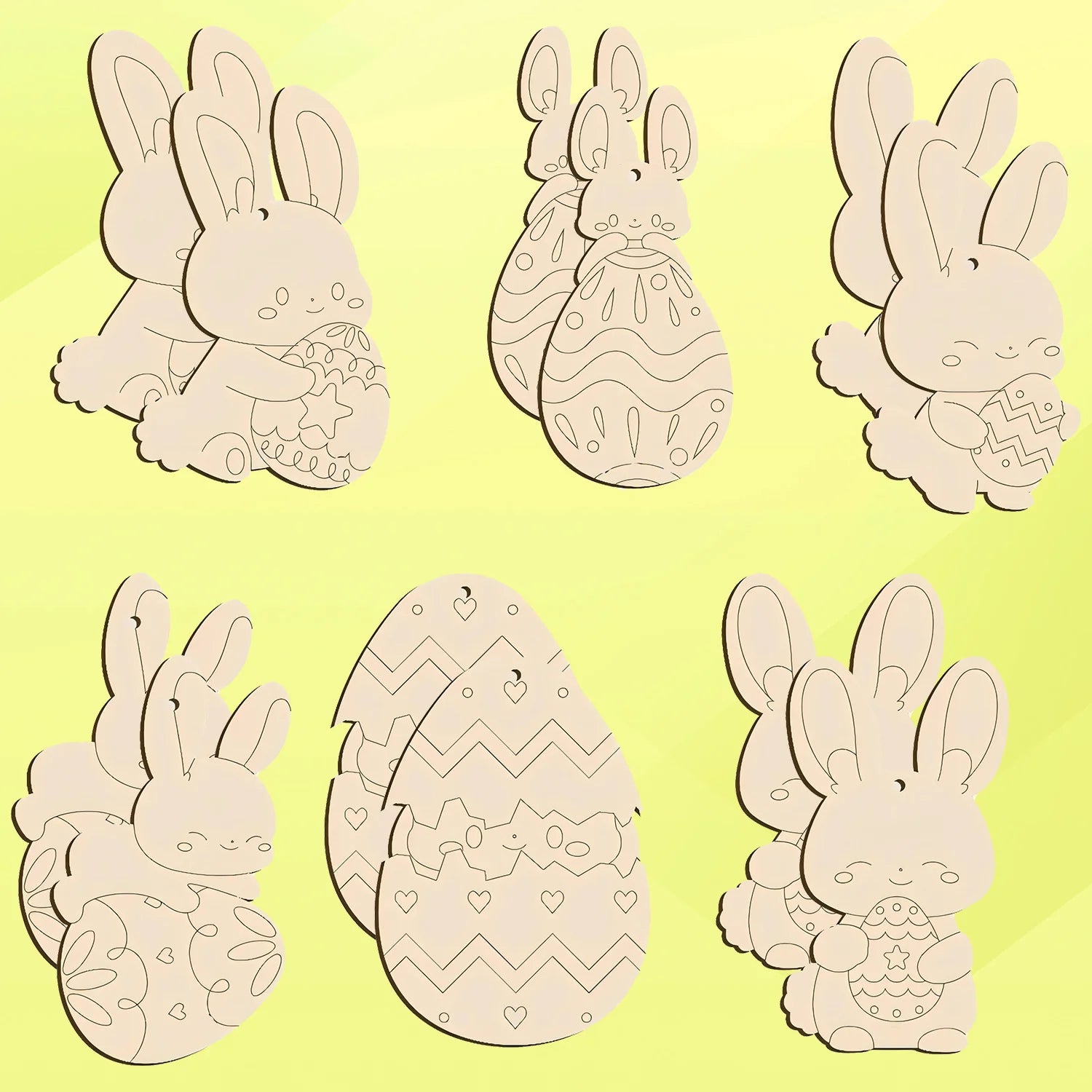 Houten Paas figuren om zelf te kleuren/schilderen – Konijn & Ei Hangers Set