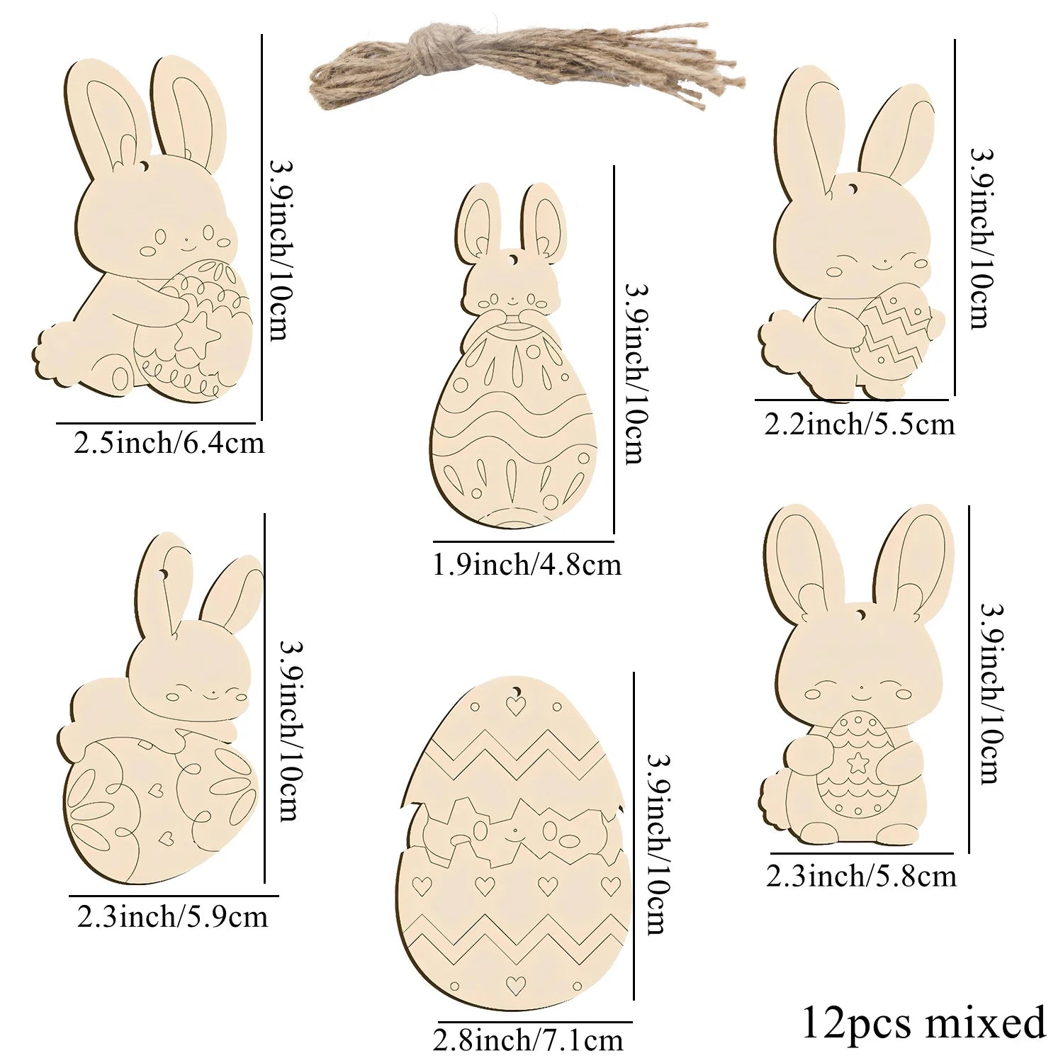 Breng extra sfeer in huis tijdens Pasen met deze charmante houten Paasfiguren. In deze set ontvang je twaalf vrolijke hangdecoraties in de vorm van paaseieren en schattige konijntjes. De figuren zijn gemaakt van licht, glad hout en speciaal ontworpen om zelf te kleuren of te schilderen. Hierdoor kun je elke hanger een eigen unieke uitstraling geven die perfect past bij jouw paasdecoratie.