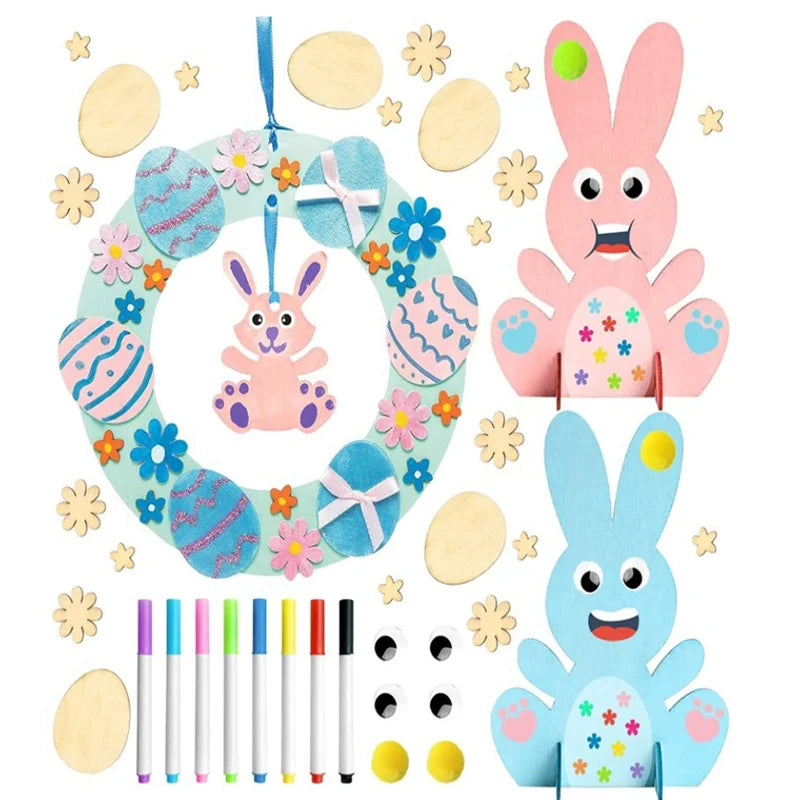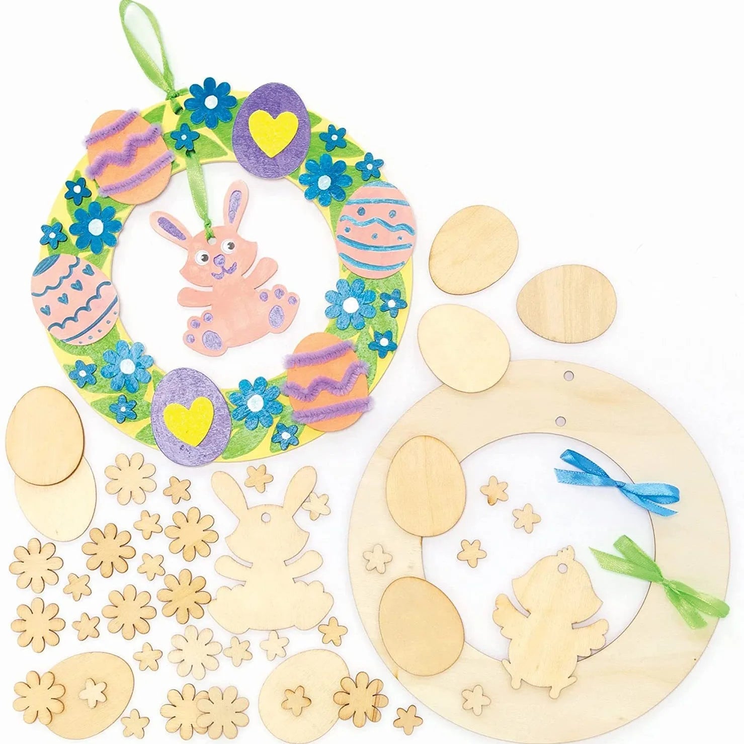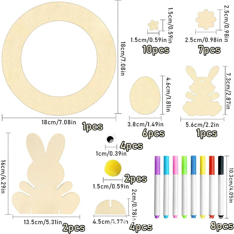 Houten Paas figuren om zelf te kleuren/schilderen – Paaskrans figuren met konijn en eieren