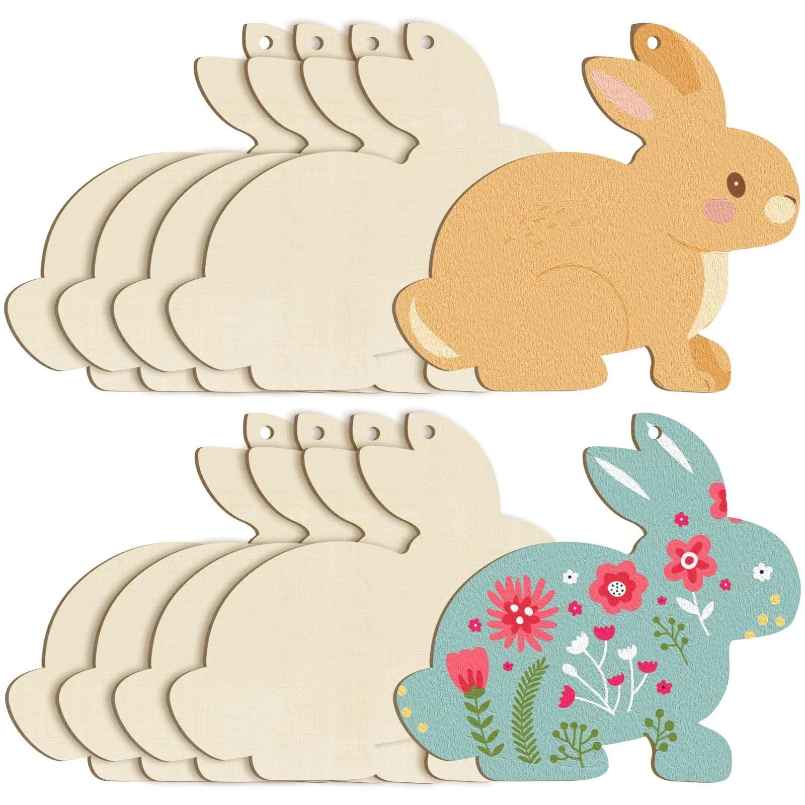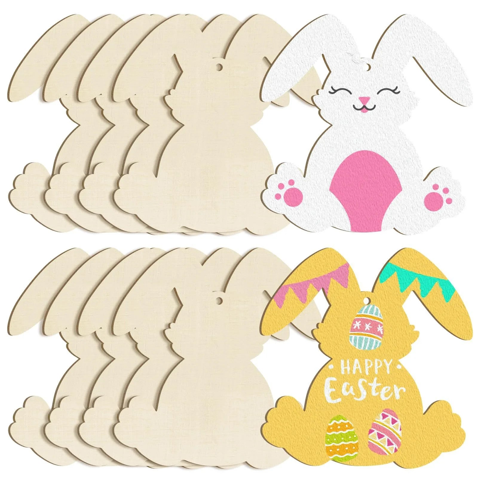 Houten Paas figuur om zelf te kleuren/schilderen – Konijnen set 10 stuks
