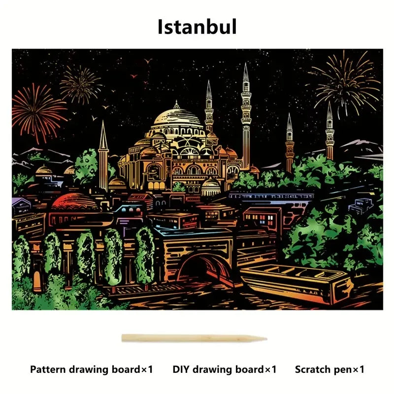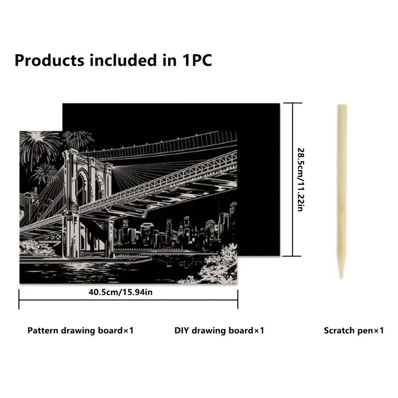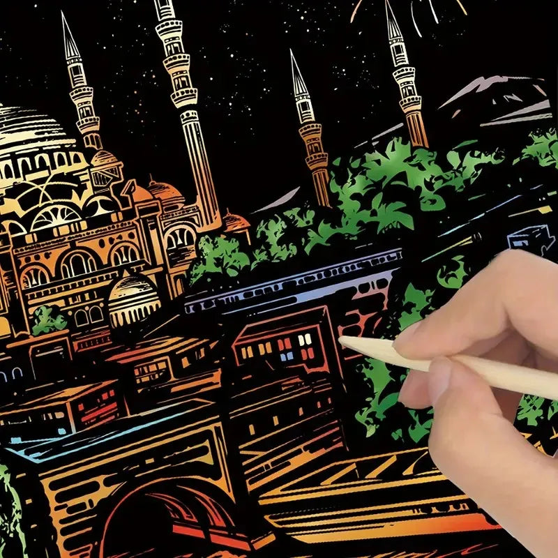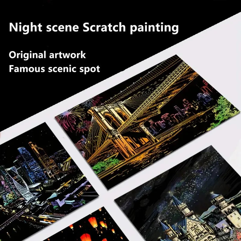 Ontdek de magie van krassen met deze luxe krastekening set. Het zwarte oppervlak verbergt een kleurrijke regenbooglaag die bij elke beweging van je pen of stokje tevoorschijn komt. Perfect om even helemaal te ontspannen en je fantasie de vrije loop te laten.