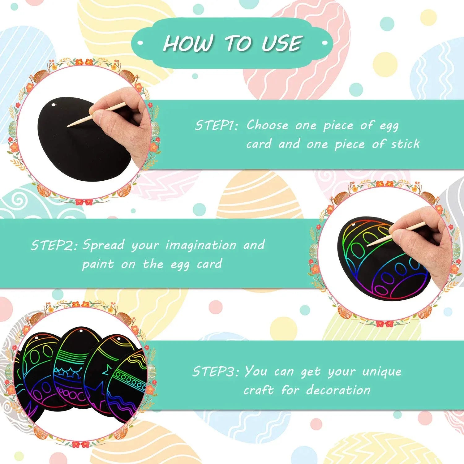 De kleurrijke eieren zijn uitermate geschikt om te gebruiken als decoratie tijdens Pasen of om cadeau te doen bij een kinderfeestje. Kinderen kunnen hun eigen unieke kunstwerkjes maken en deze ophangen of neerzetten als vrolijke versiering.