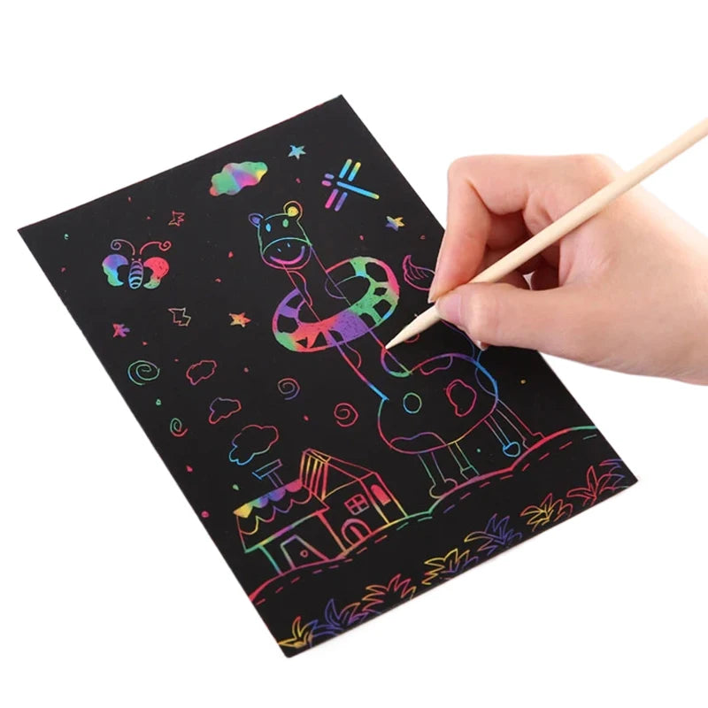 Zoek je een origineel en betaalbaar geschenk? Deze set is geschikt voor zowel jongens als meisjes en past perfect bij verjaardagen, feestdagen of gewoon als leuke verrassing. Geef kinderen een vrolijke en kleurrijke ervaring met deze krastekening set.