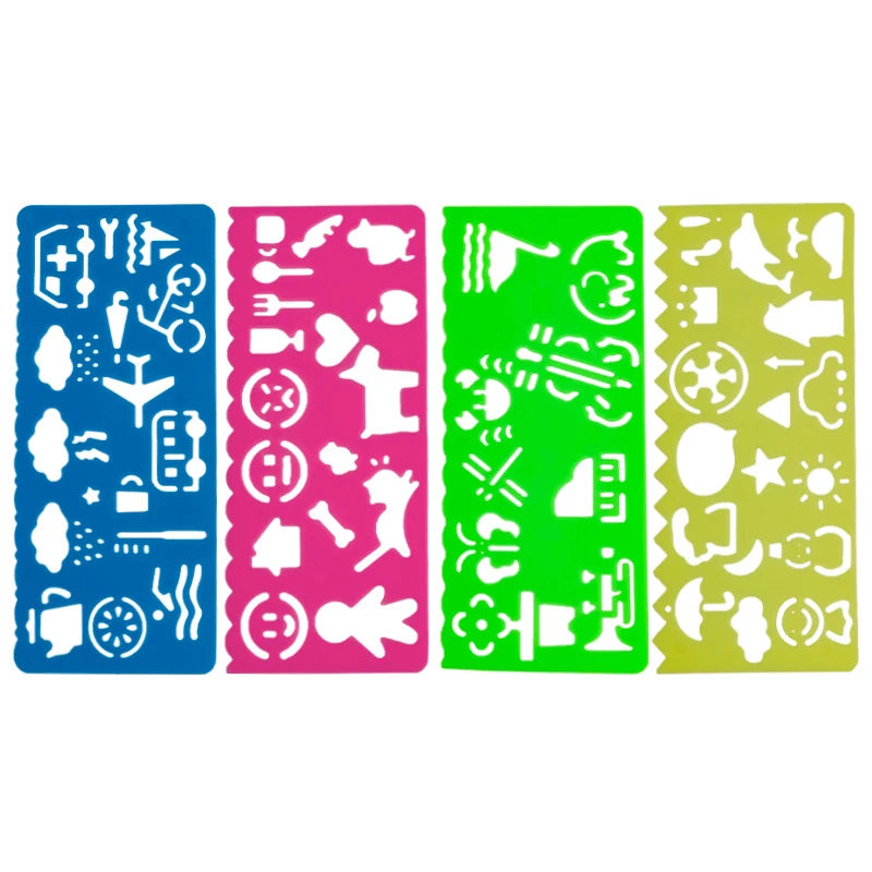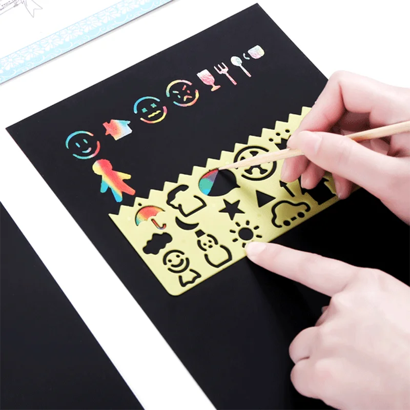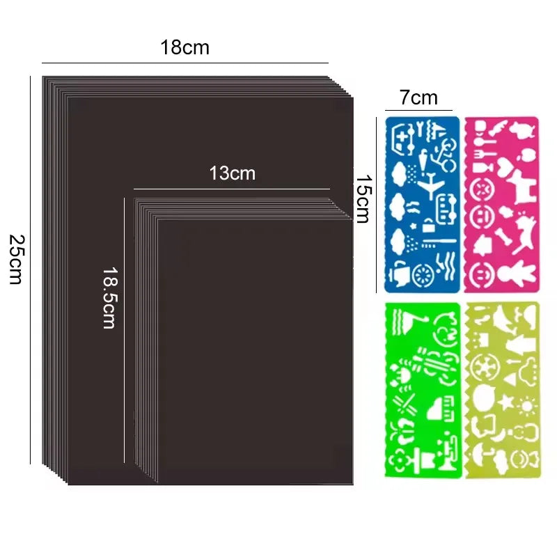 Krastekening set met 4 schildertemplates en kleurrijk kraspapier