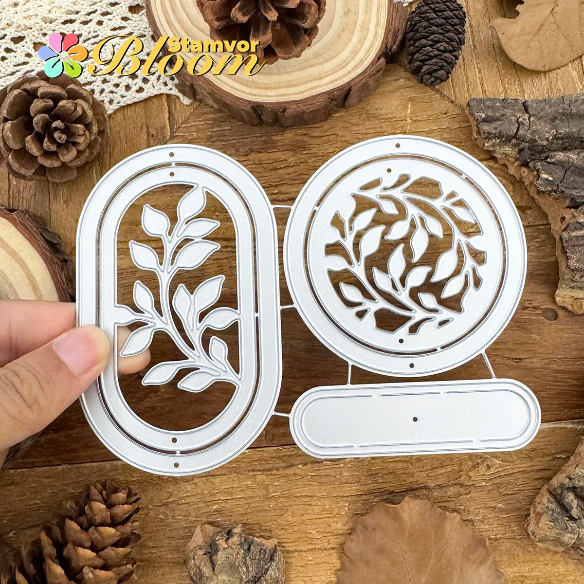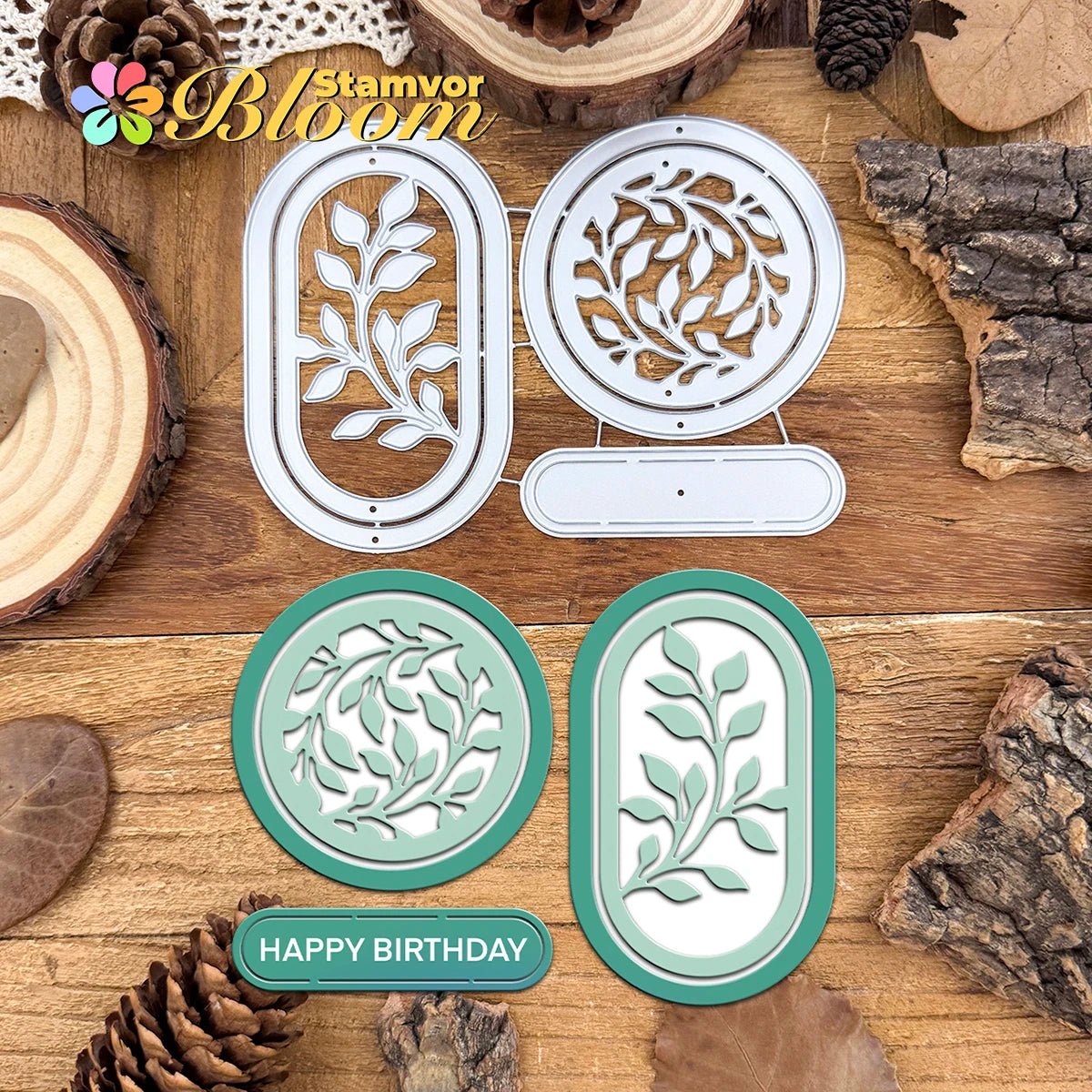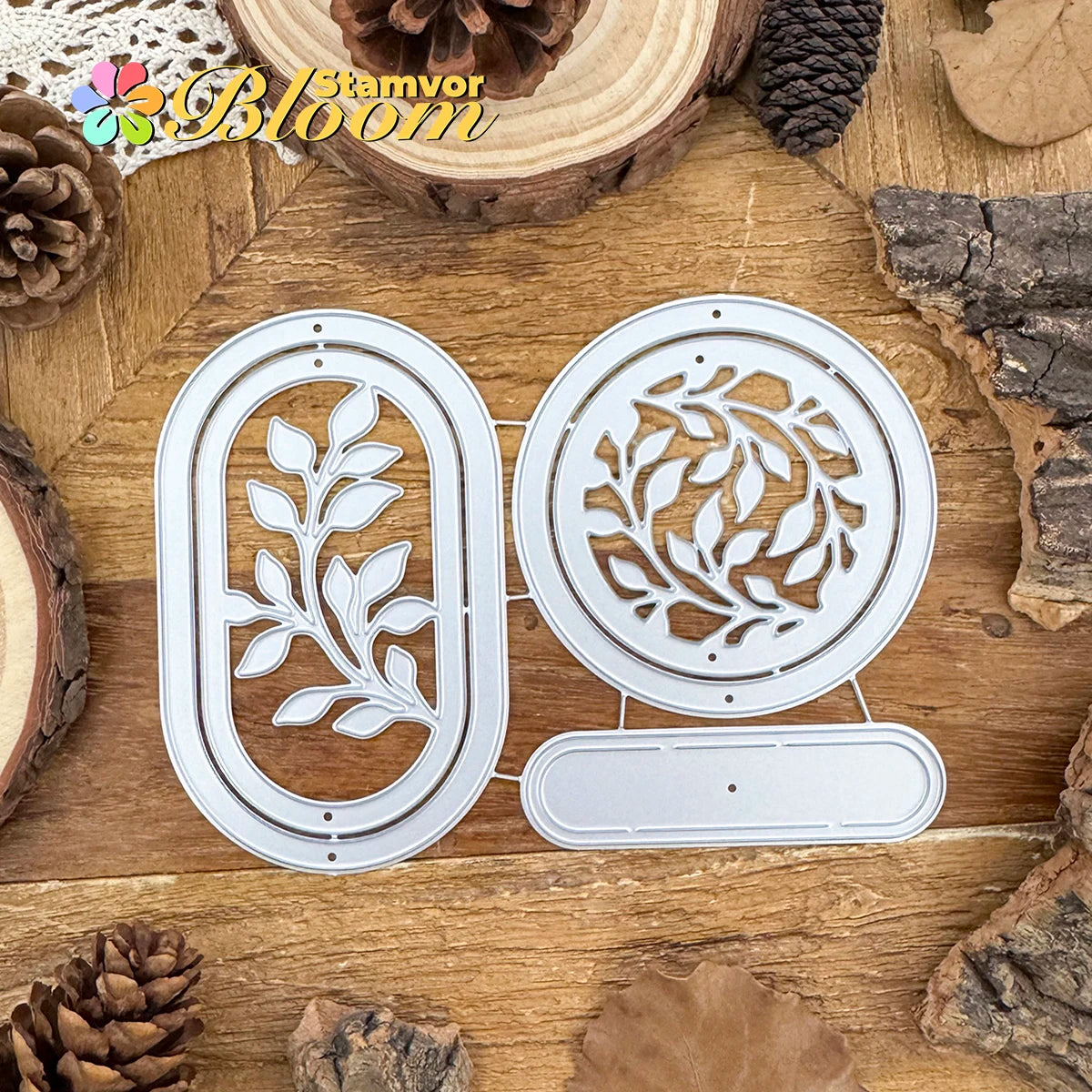 Metalen snijmal bladeren takken cirkels frames labels decoratief