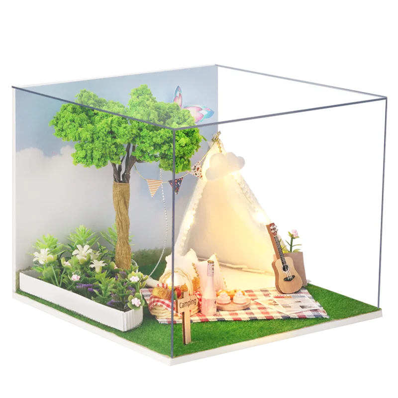 Bouw je eigen sfeervolle miniatuurhuisje met deze complete zelfbouwset! Dit gedetailleerde doe-het-zelf pakket bevat hoogwaardige materialen zoals hout, stof, papier en kunststof om een prachtig ingerichte kamer te creëren. Inclusief verlichting voor een warme uitstraling.
