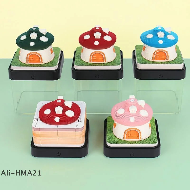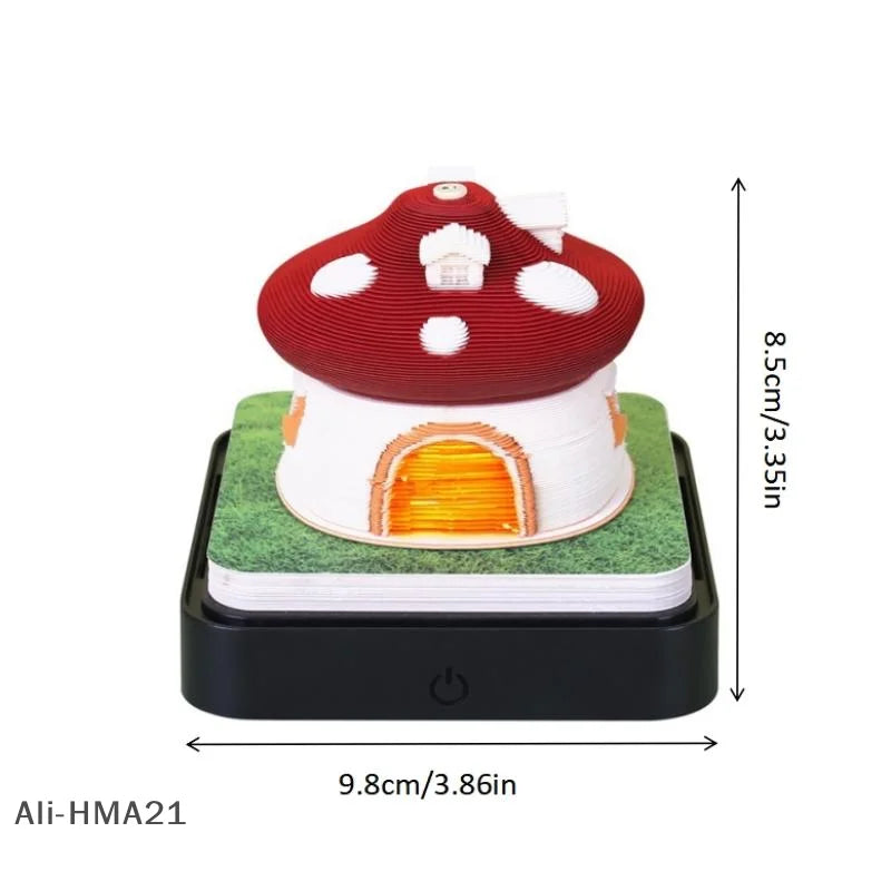 Breng een vleugje fantasie naar je werkplek met deze prachtige 3D Papier Sculptuur Paddenstoel Huis Bureaukalender. De combinatie van fijn uitgesneden papierlagen en zachte LED-verlichting creëert een betoverend tafereel dat elke ruimte doet opleven. De gedetailleerde paddenstoelvorm en warme gloed maken dit een echte blikvanger op je bureau, nachtkastje of boekenplank.