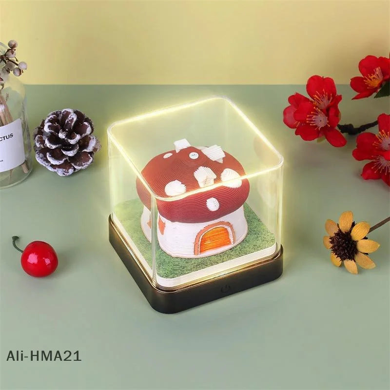 3D Papier Sculptuur Paddenstoel Huis Bureaukalender 2026 met LED Licht