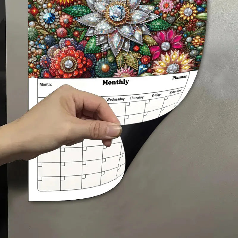 Diamond Painting Kalender 2026 met Dromerige Bloemen en Magnetisch Whiteboard