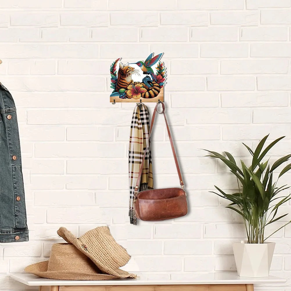 Diamond Painting Kapstok/Sleutelrek Dieren Design Houten Wandhaken