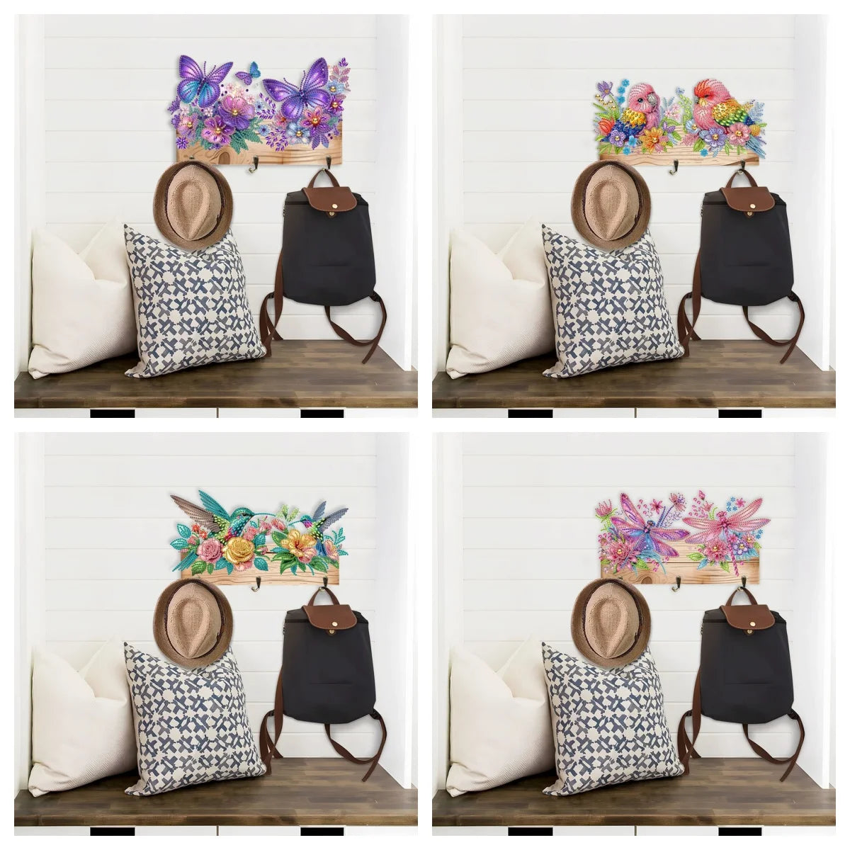 Geef jouw interieur een speelse en creatieve uitstraling met dit prachtige Diamond Painting kapstok/sleutelrek met dierenprint. Dit decoratieve wandrek combineert functionaliteit met een opvallend design, waardoor het niet alleen handig is voor het ophangen van sleutels of accessoires, maar ook een echte eyecatcher vormt in huis. Perfect voor de hal, slaapkamer of zelfs de kinderkamer.