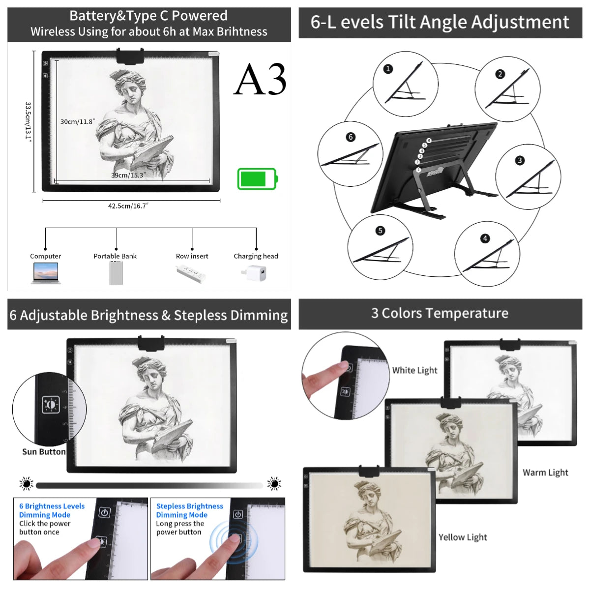 Diamond Painting Ledlamp A3/A4 Lichtpad met 3 Lichtstanden Tracing Board