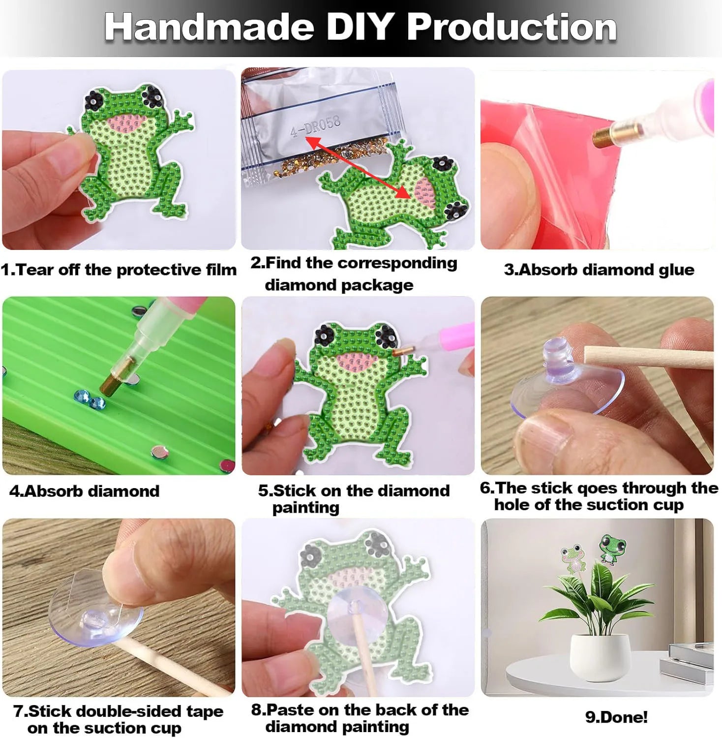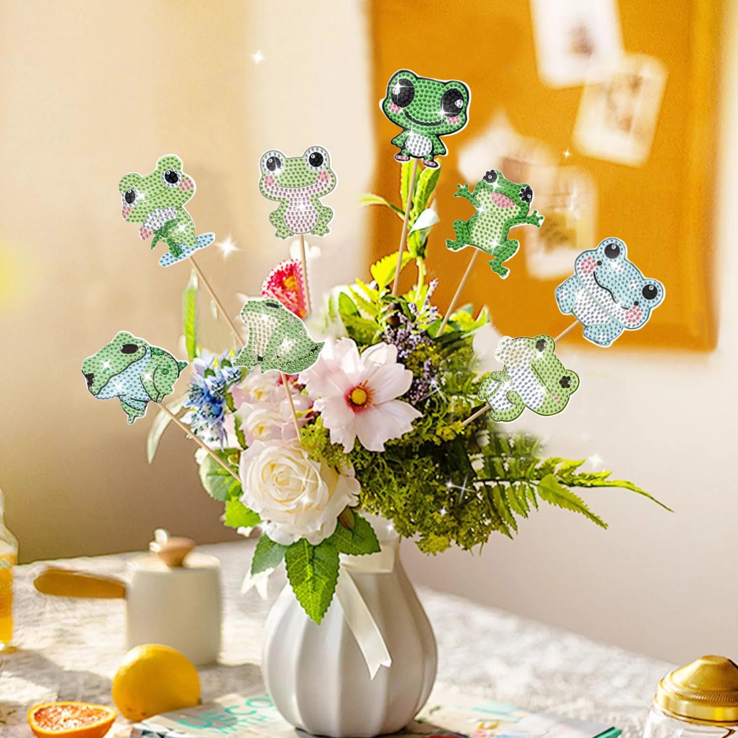 Met deze Diamond Painting Plantenstekers creëer je eenvoudig een persoonlijke en creatieve sfeer. De combinatie van sprankelende details en een vriendelijk kikkerontwerp maakt ze aantrekkelijk voor jong en oud. Ze vormen een originele decoratieve oplossing voor iedereen die zijn planten net dat beetje extra uitstraling wil geven en op zoek is naar een speels maar stijlvol accent.