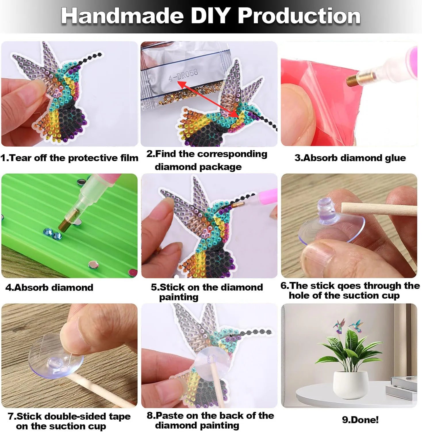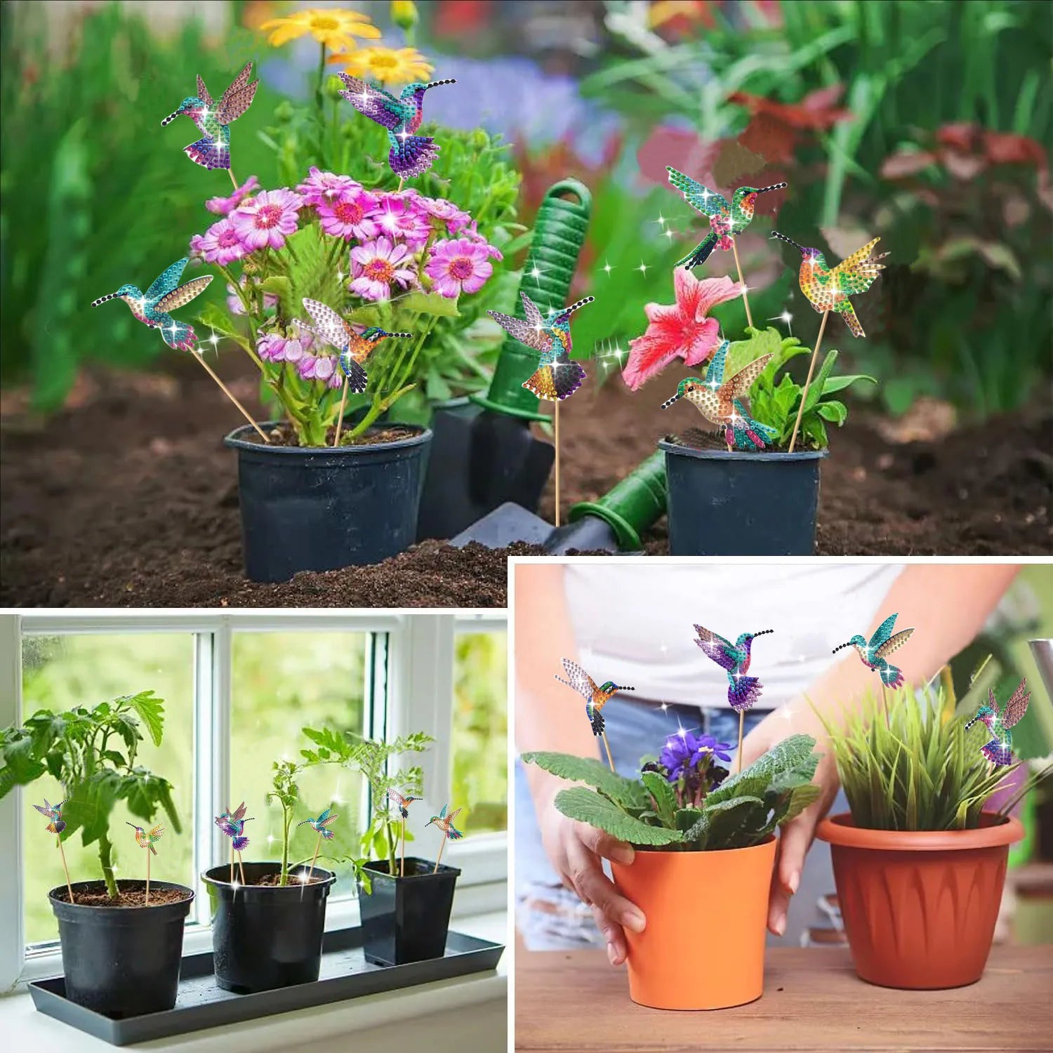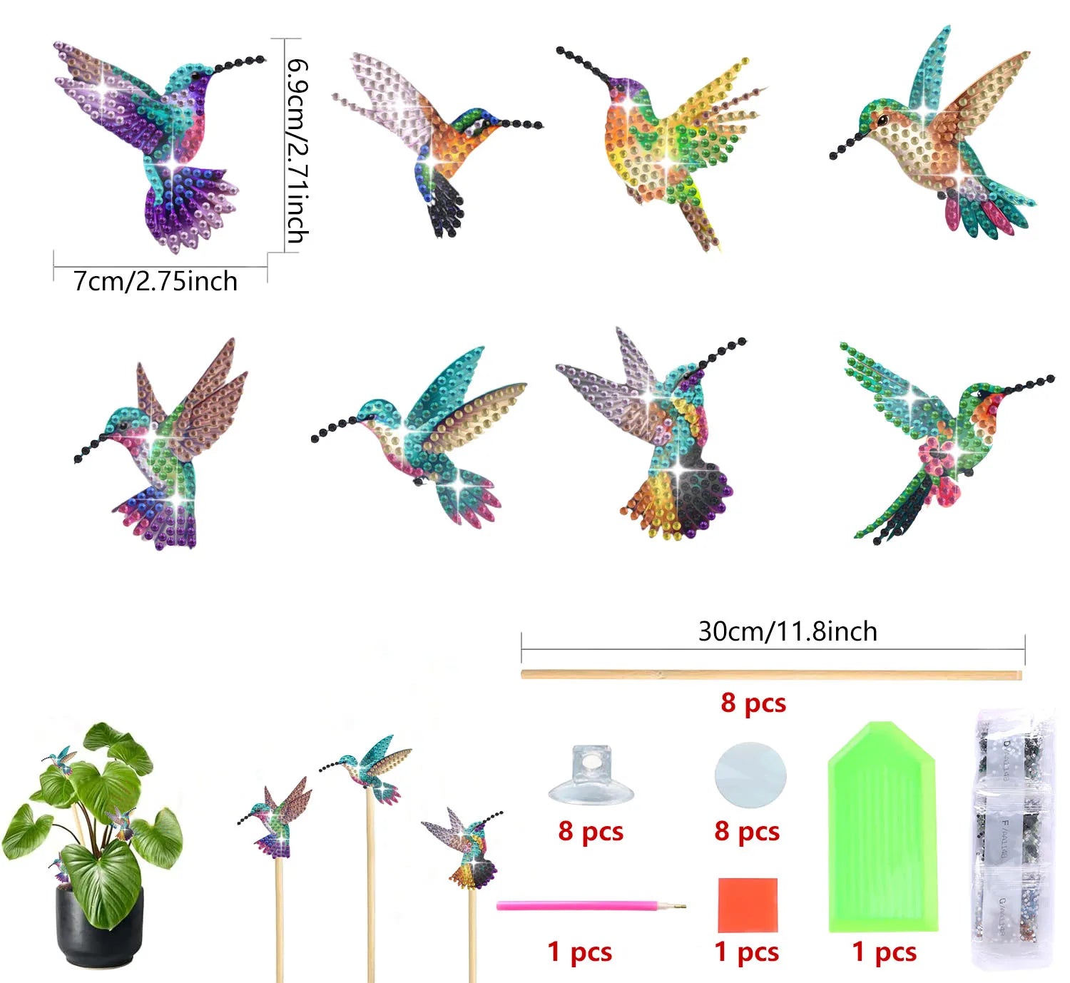 Diamond Painting Plantenstekers Kolibrie Set van Acht voor Potten