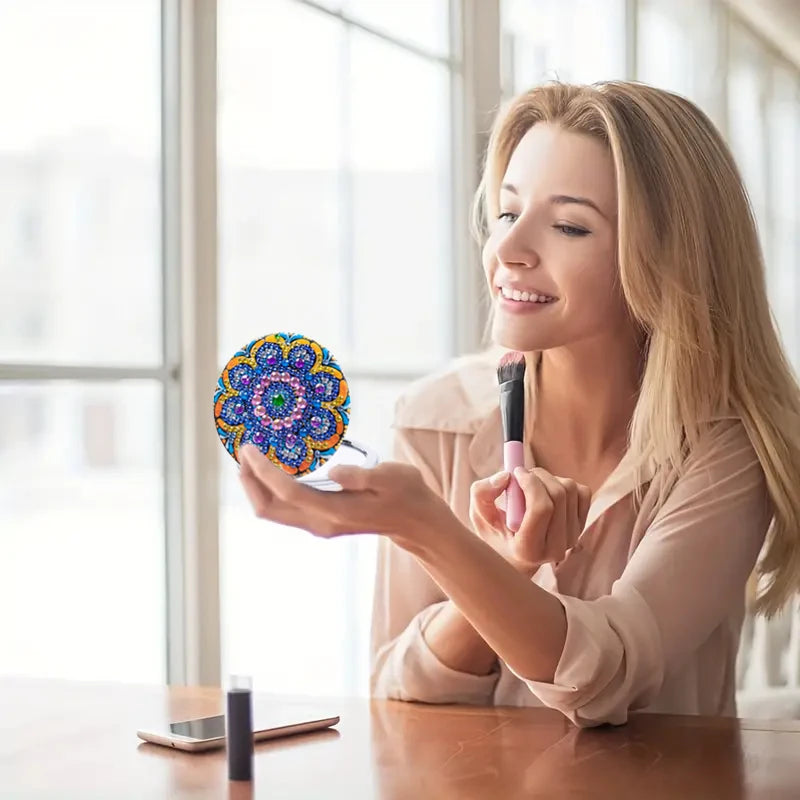 Ontdek de perfecte accessoire voor elke beauty-lover: een compacte make-up spiegel met schitterende diamant steentjes en een elegant bloemenmotief. Deze prachtige diamond painting spiegel is niet alleen handig voor onderweg, maar ook een stijlvol statement in je handtas of op je kaptafel. De glinsterende steentjes zorgen voor een luxe uitstraling en maken van iedere snelle make-up check een feestje.