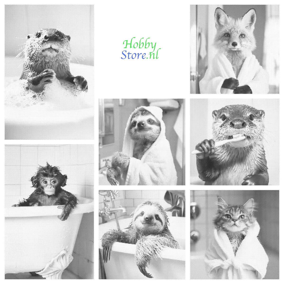 DOT Painting – Dieren in Bad (40x60cm / 50x75cm / 60x90cm)