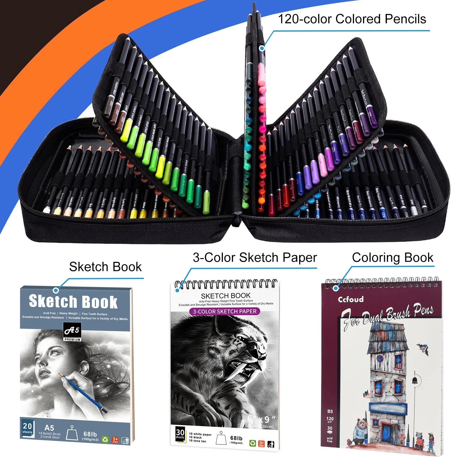 Kleurpotloden set 120 stuks met etui en schetsboeken voor creatief tekenen