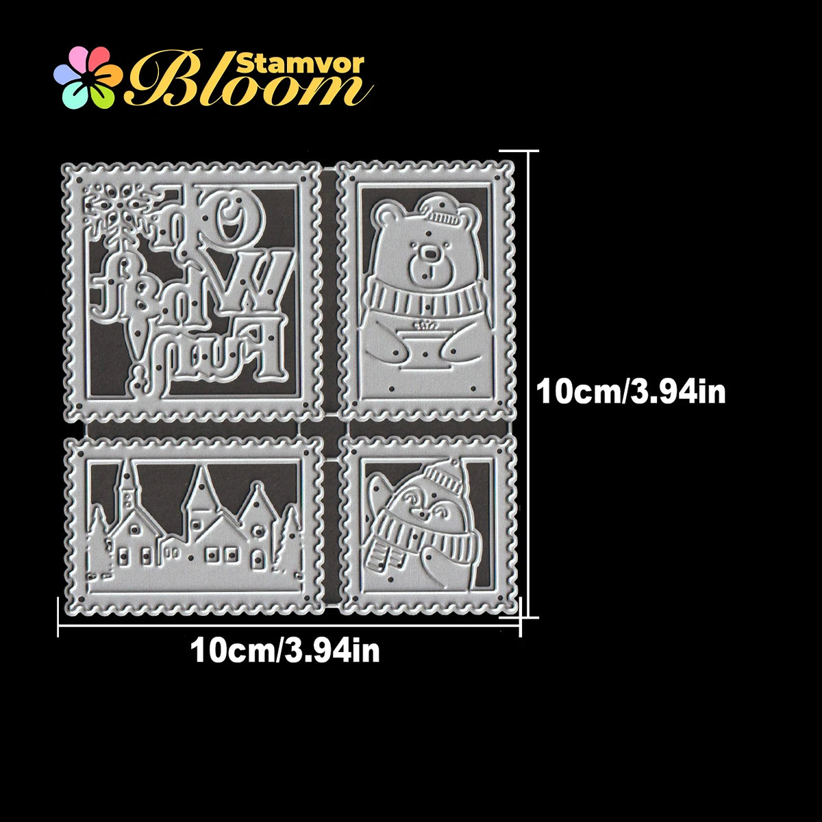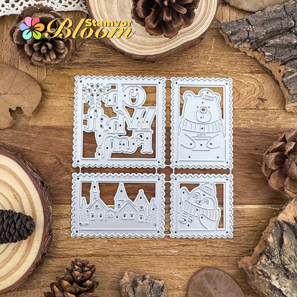 Breng de magie van de winter tot leven met deze prachtige snijmal kerstbeer en pinguïn dorp. Perfect voor het maken van unieke kerstkaarten, cadeaulabels en scrapbookpagina’s. De gedetailleerde vormen van de vrolijke beer, schattige pinguïn en sfeervol dorp zorgen voor een feestelijke uitstraling in al je creatieve projecten. Met de postzegel- en frame-elementen voeg je eenvoudig een stijlvolle rand of accent toe aan elk ontwerp.